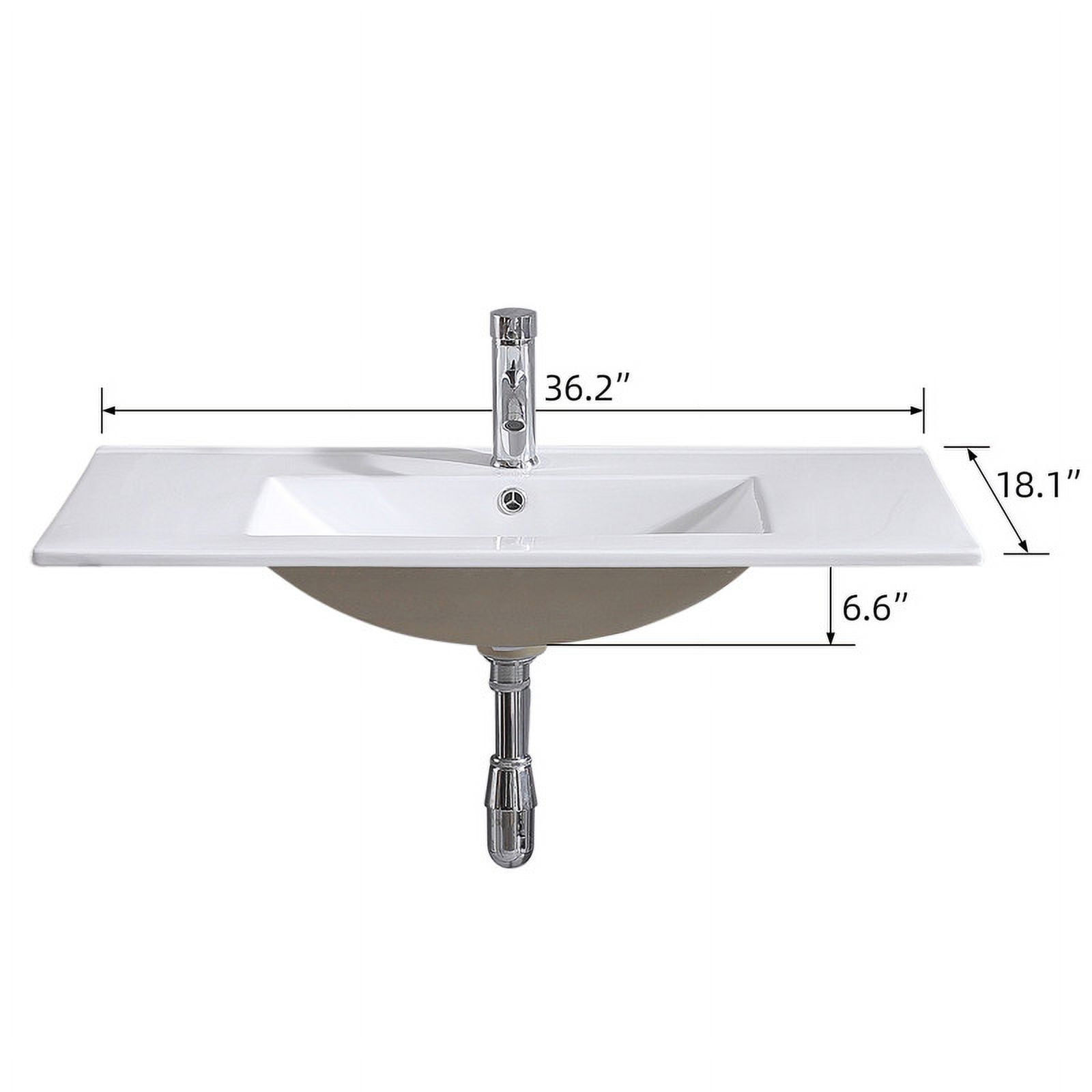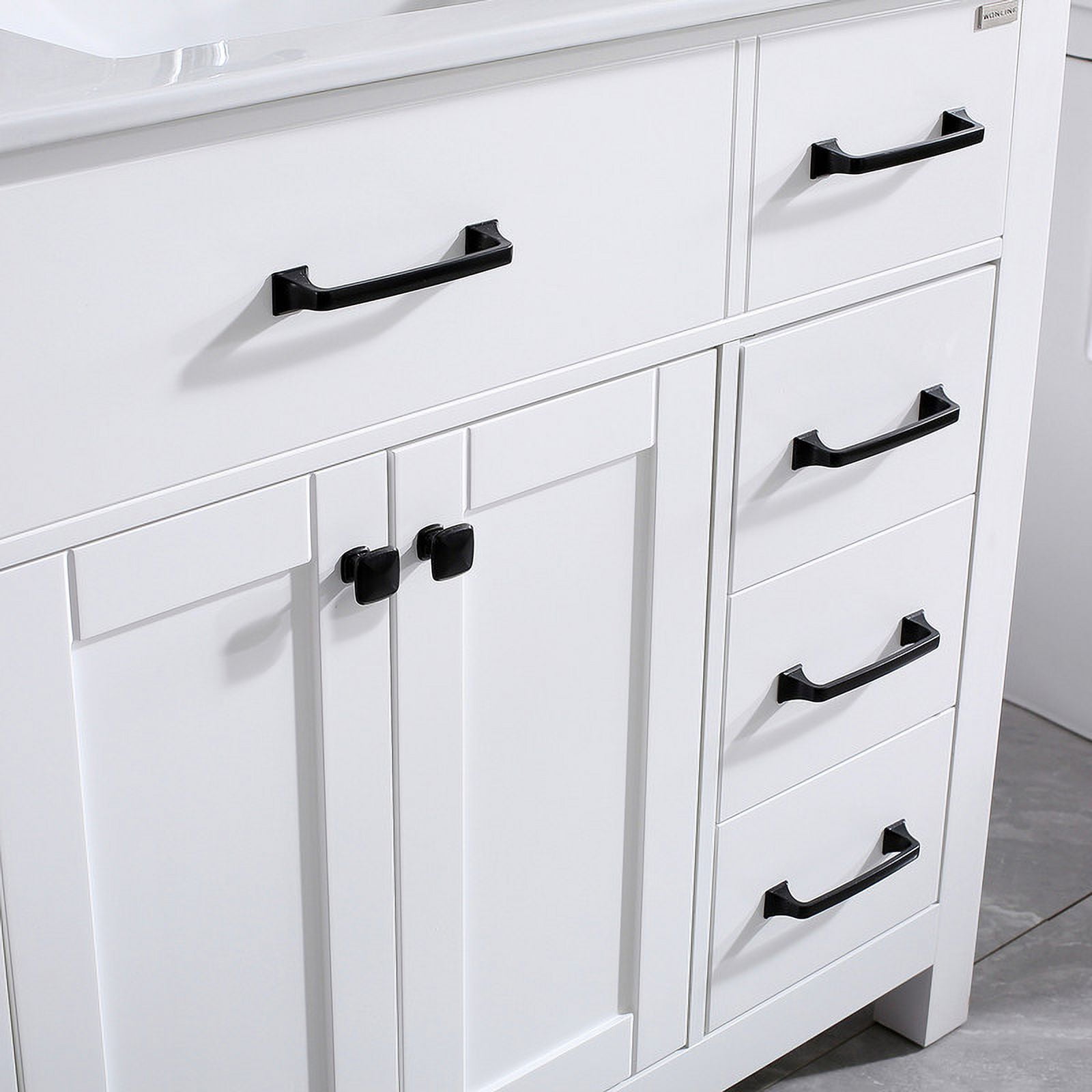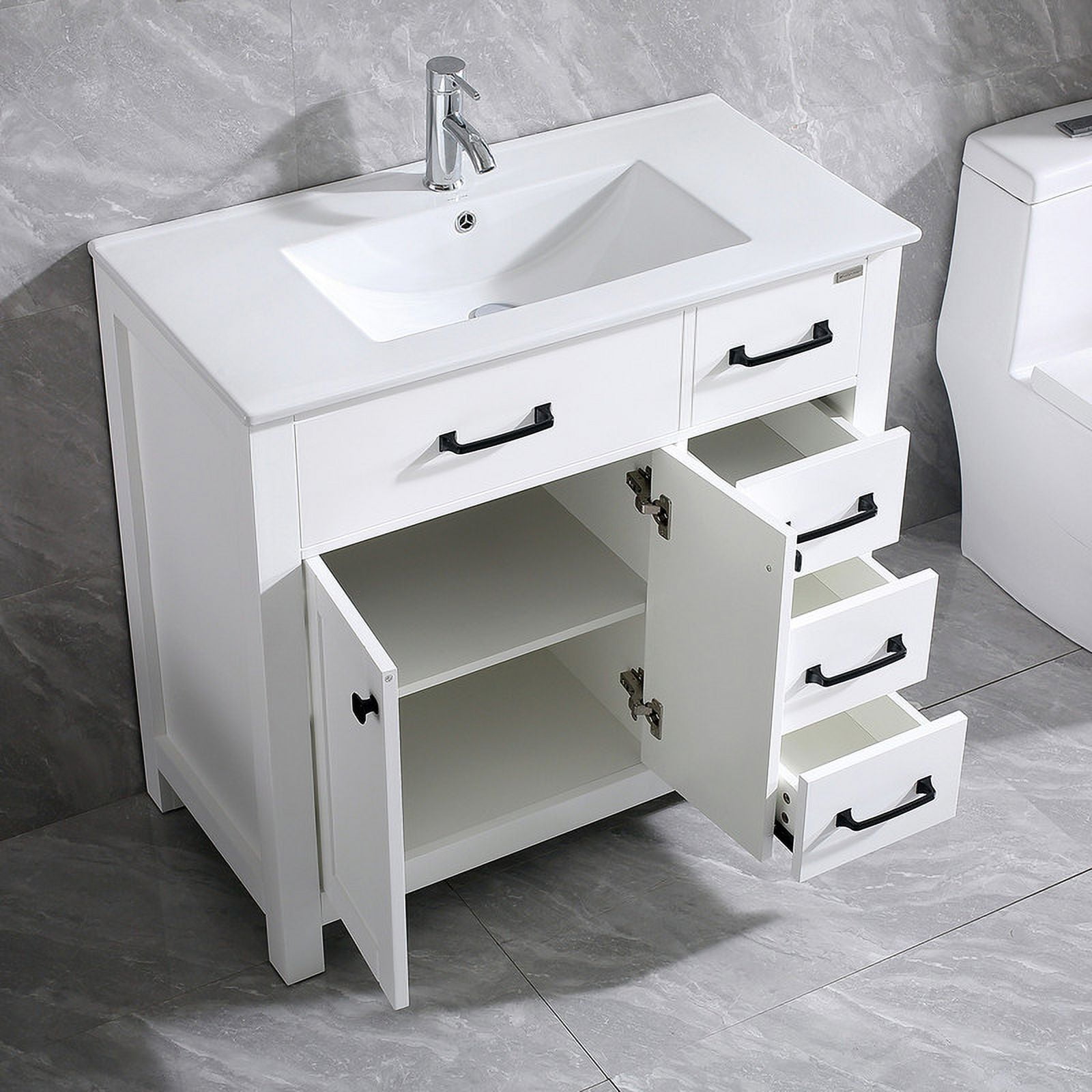 Walsport 36″ Luxurious Bathroom Vanity with Sink Top, Modern Bathroom Vanities with 2-Door and 5 Drawers Cabinet , Solid Wood Bathroom Cabinet with Undermount Ceramic Sink, White