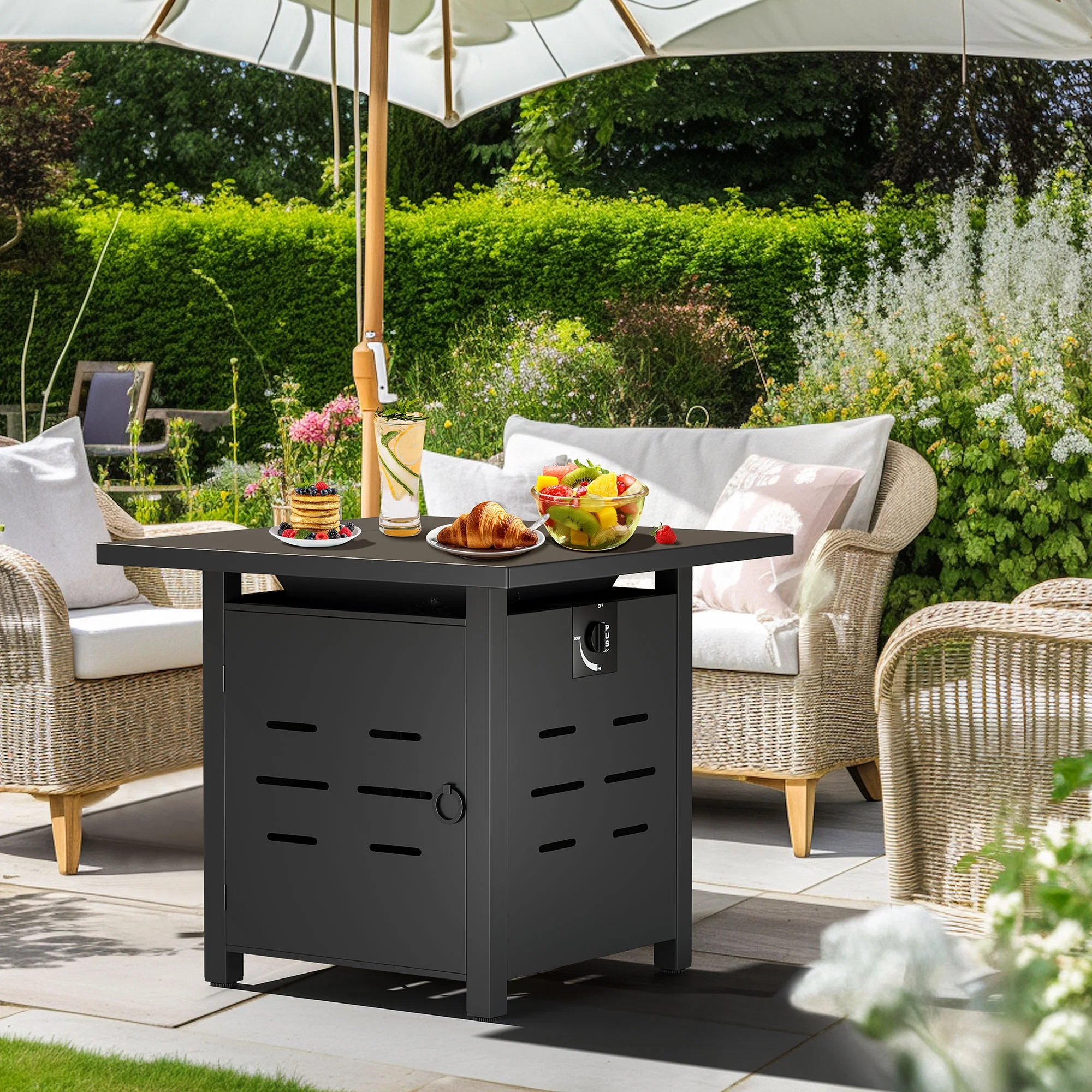 Our fire pit tables are the perfect focal point for cozy outdoor gatherings, whether it’s a party or a family hangout. Safety-certified regulators and durable stainless steel construction ensure long-lasting use. With 40000 BTU and propane fuel, they provide a warm, clean-burning atmosphere without ash or smoke. The 28-inch table offers space for drinks and snacks, and it can convert into a coffee table. Easy ignition and temperature control make it user-friendly.