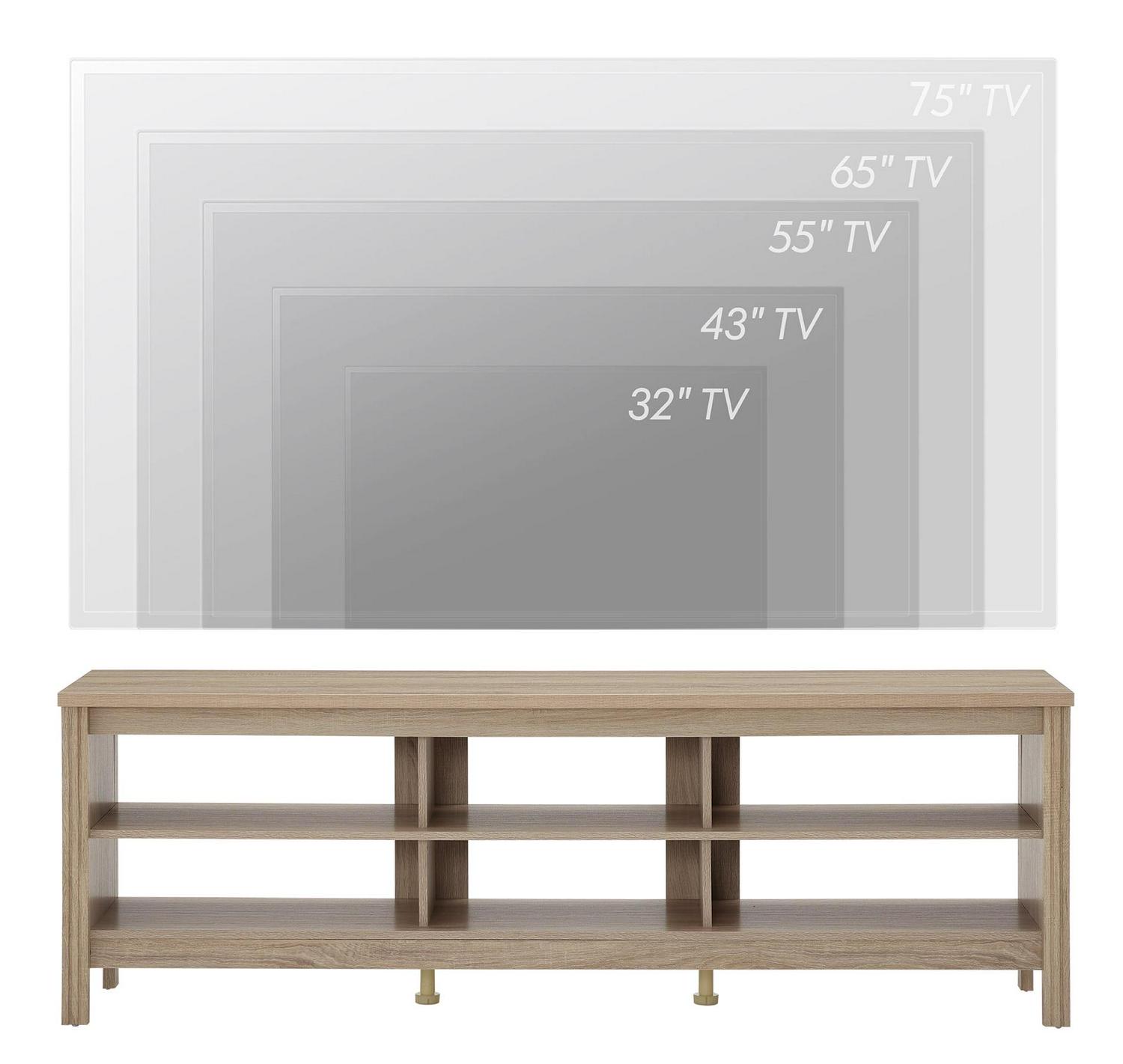 – Versatile Entertainment Center: The perfect piece for living rooms, bedrooms, and lounge areas, this oak media console accommodates your entertainment essentials with ease while supporting TVs up to 75″.