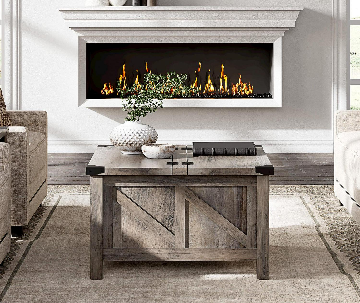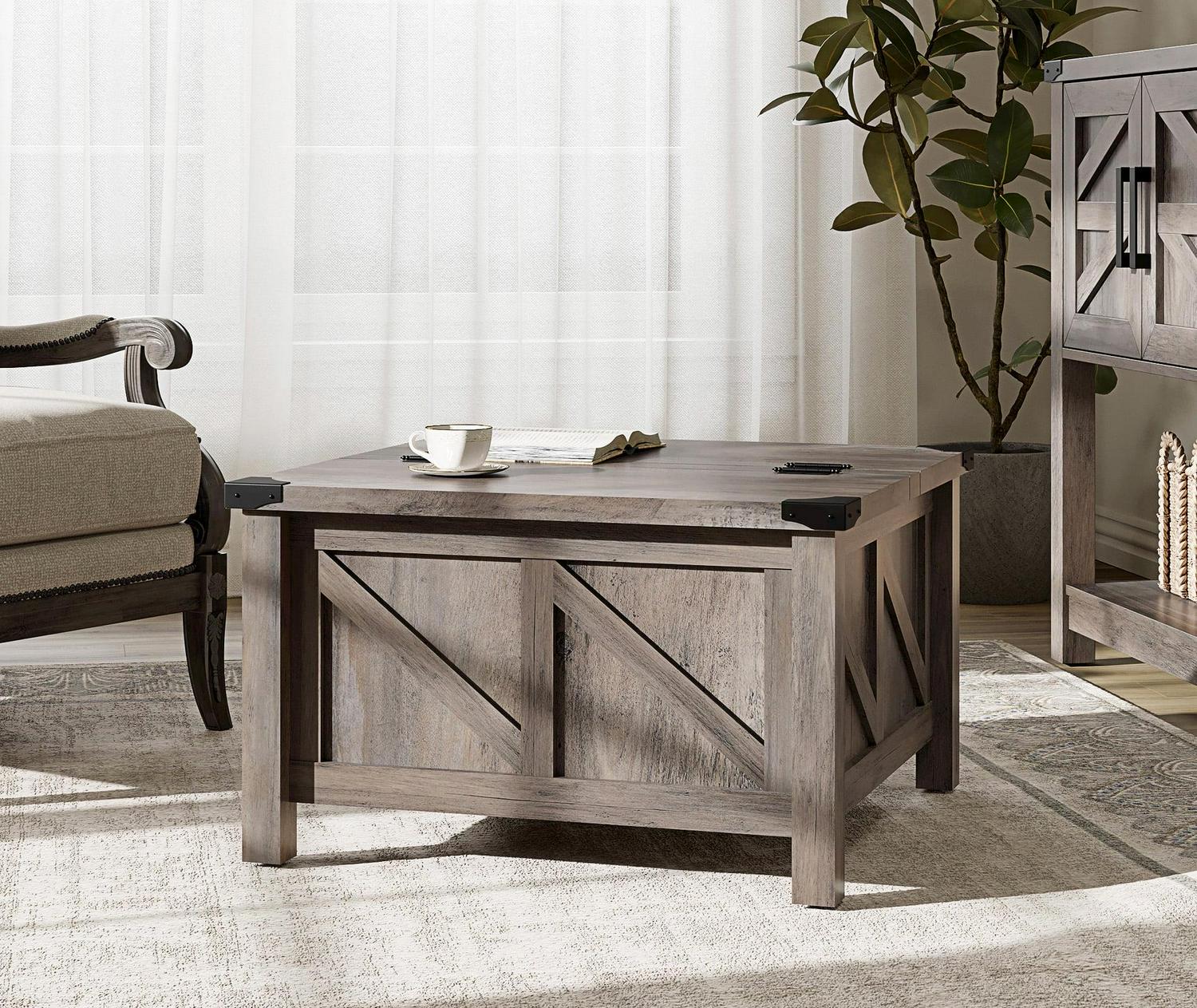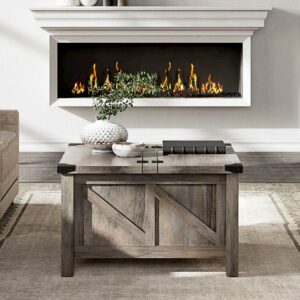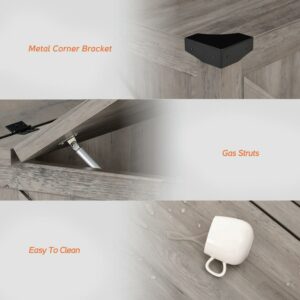 WAMPAT Modern Farmhouse Coffee Table, Square Wood Center Table with Gas Struts Lift-Top for Extra Large Hidden Storage.