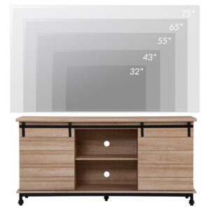 Wampat Modern Farmhouse TV Stand for TVs up to 65 , Rustic Oak Finish