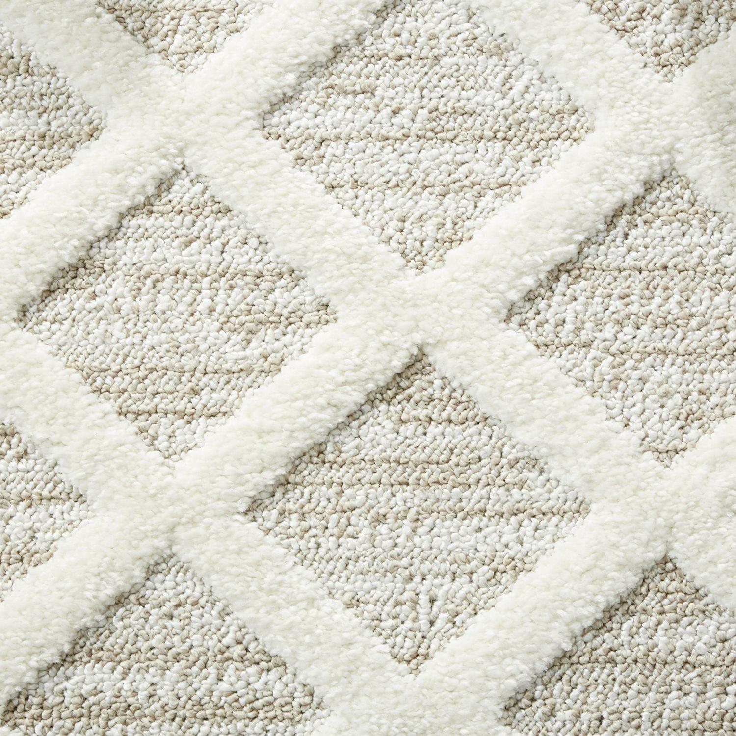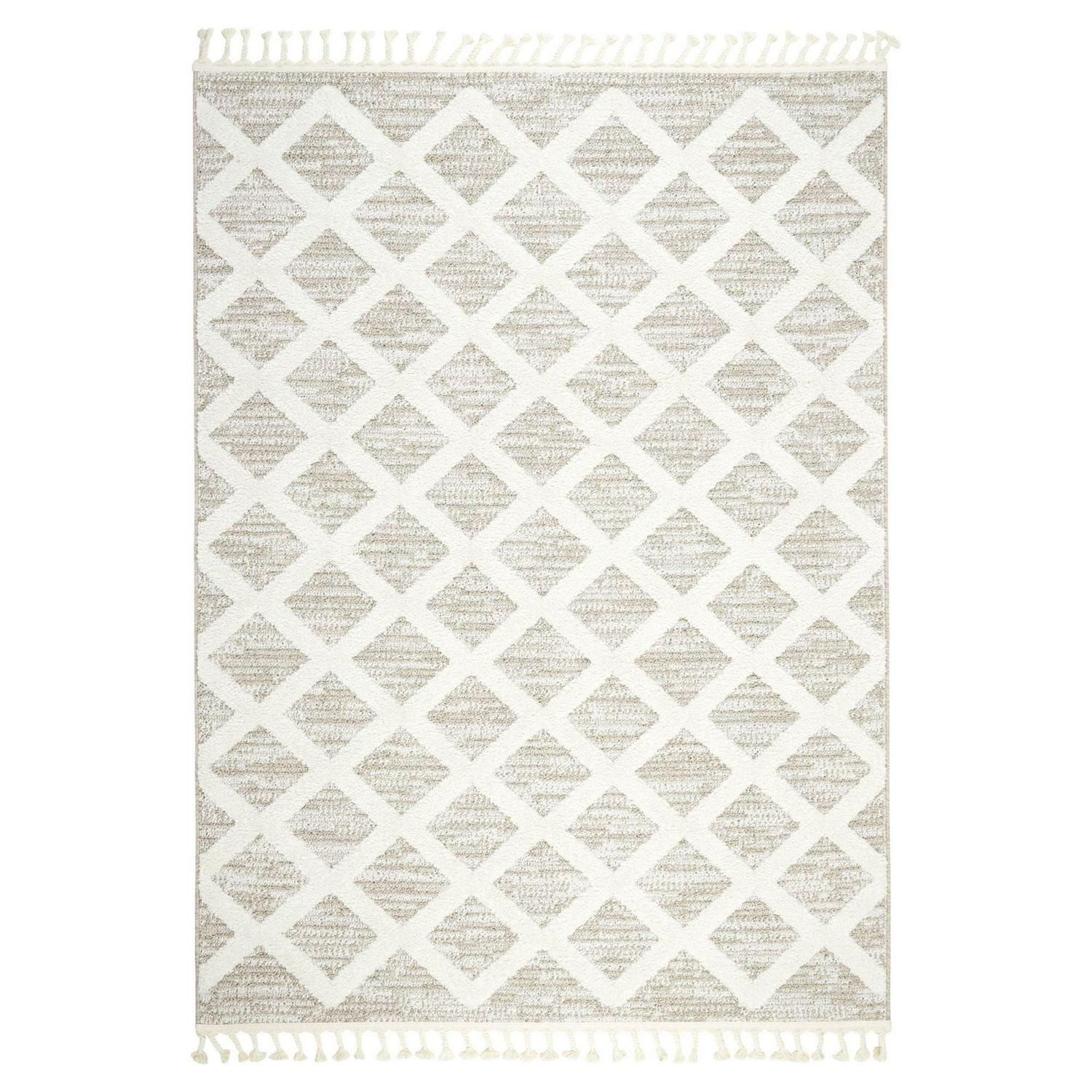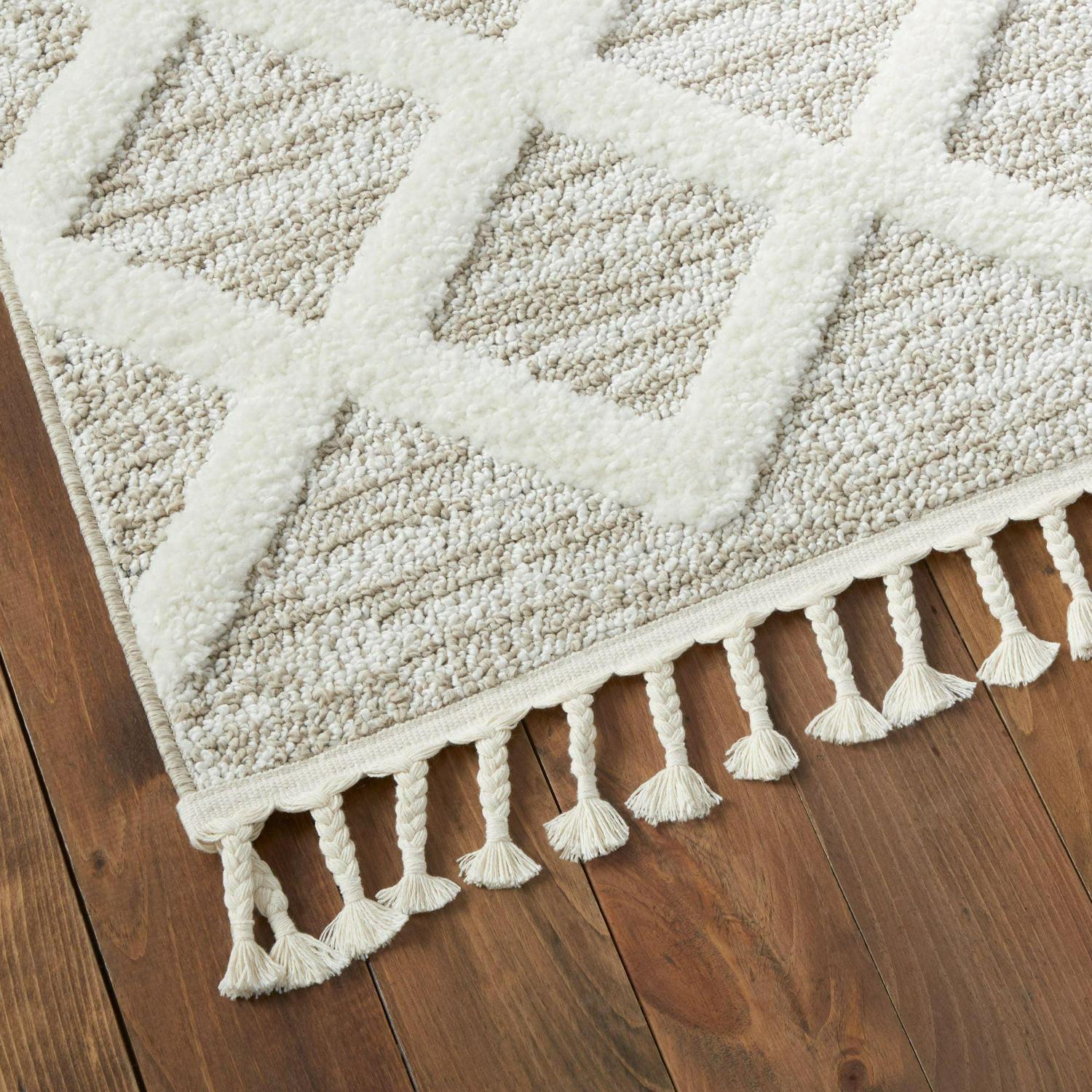 – GEOMETRICL DESIGN: Features a pattern of dimensional triangles in shades of beige with fringe detail at both ends and offers a casual, stylish layer for your flooring