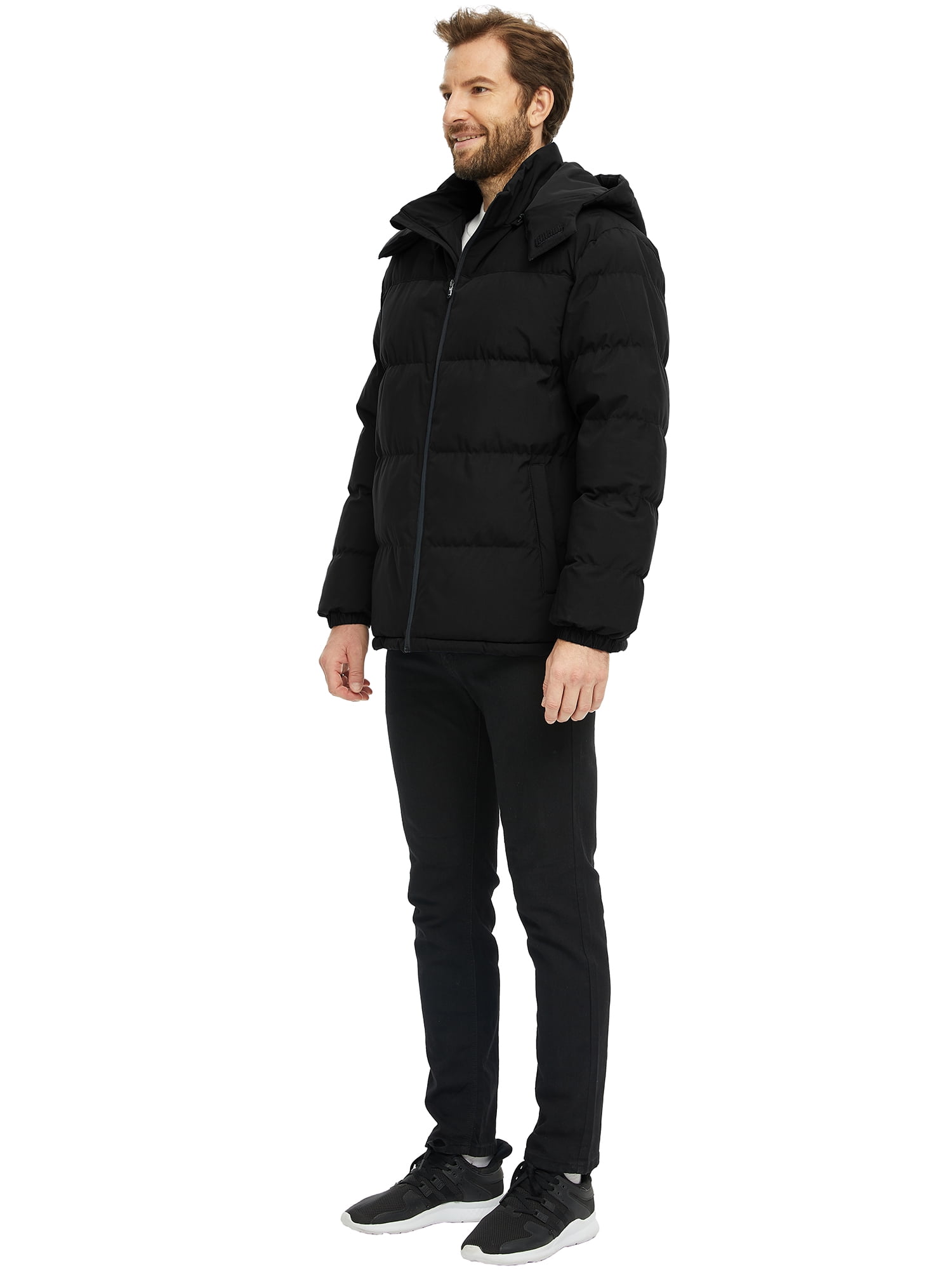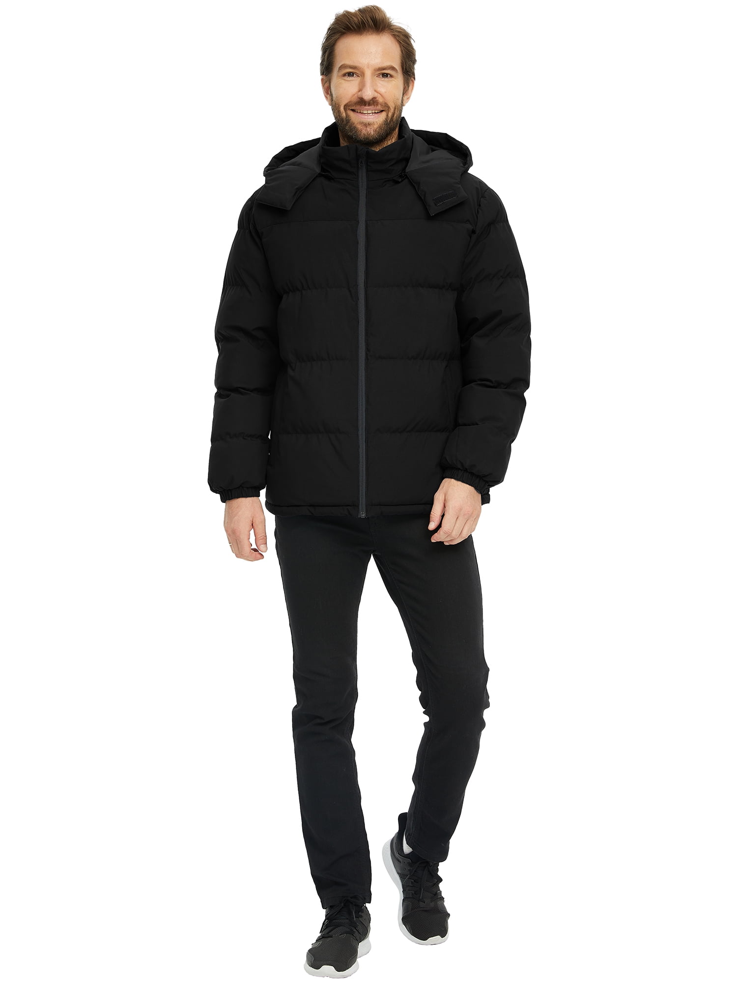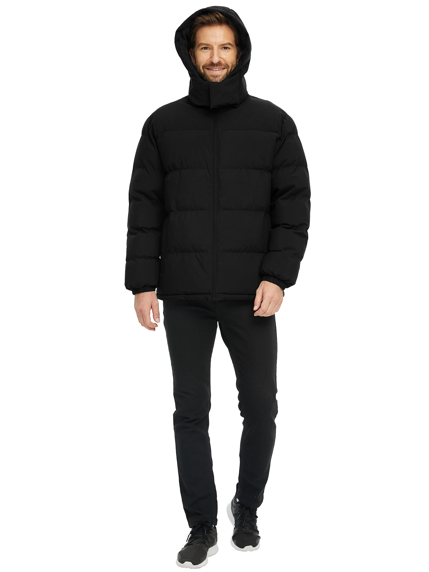 Wantdo Men‘s Winter Coat Recycled Puffer Jacket Waterproof Winter Jacket with Hood Black L