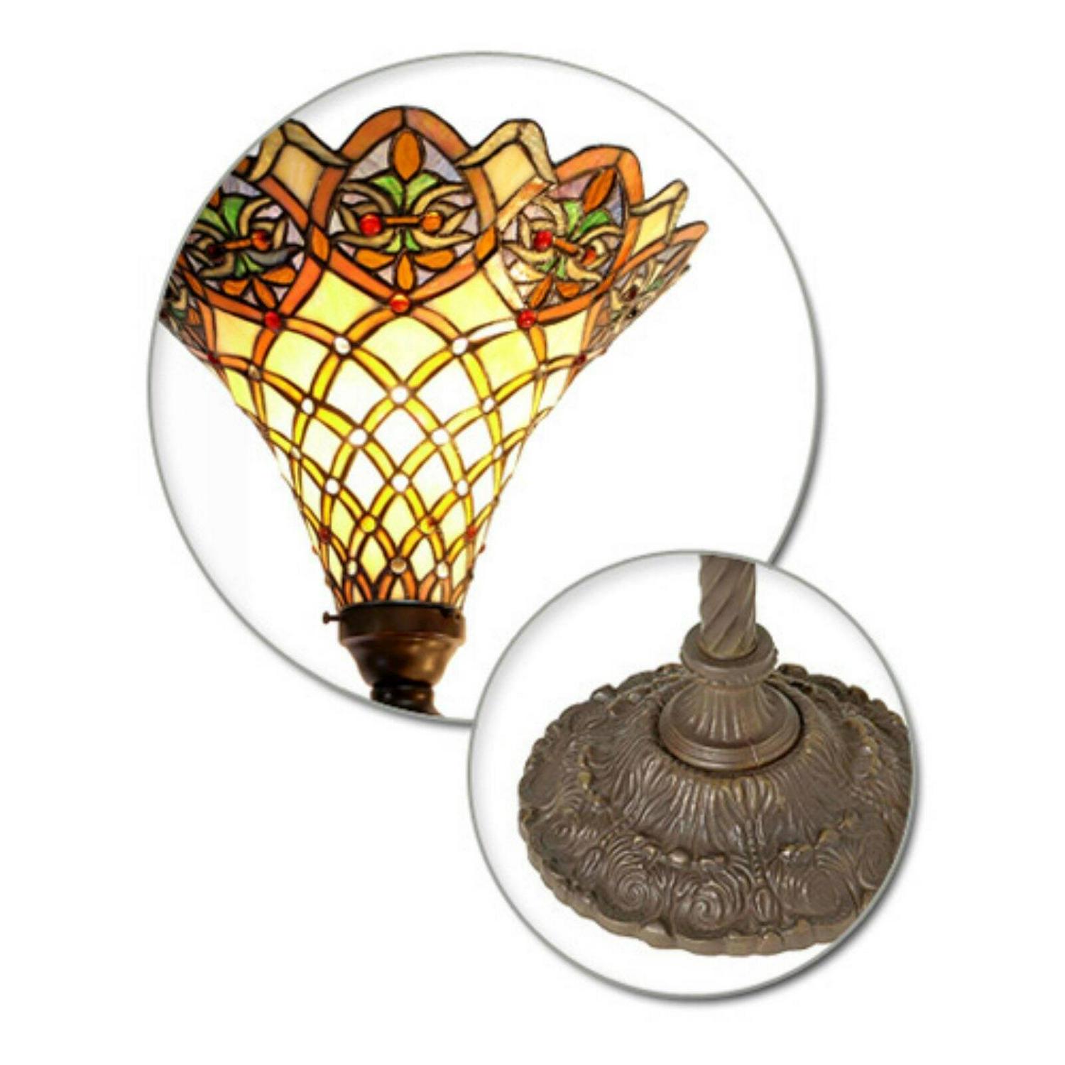 The elegant Arielle Torchiere has been handcrafted using methods first developed by Louis Comfort Tiffany. Shade contains 531 hand-cut pieces of stained glass, each wrapped in fine copper foil 81 cabochon accents Highlighted by warm amber tones with light orange accents Classic design speed Requires one 100-watt socket light bulbs Measures 72 inches high x 16 inches wide Note: Shade colors will appear darker and less vibrant when not illuminated.The handcrafted nature of this product creates variations in color, size and design. If buying two of the same item, slight differences should be expected.Attention California residents: This product may contain lead, a chemical known to the State of California to cause cancer and birth defects or other reproductive harm.CSA Listed, ETL Listed, UL Listed