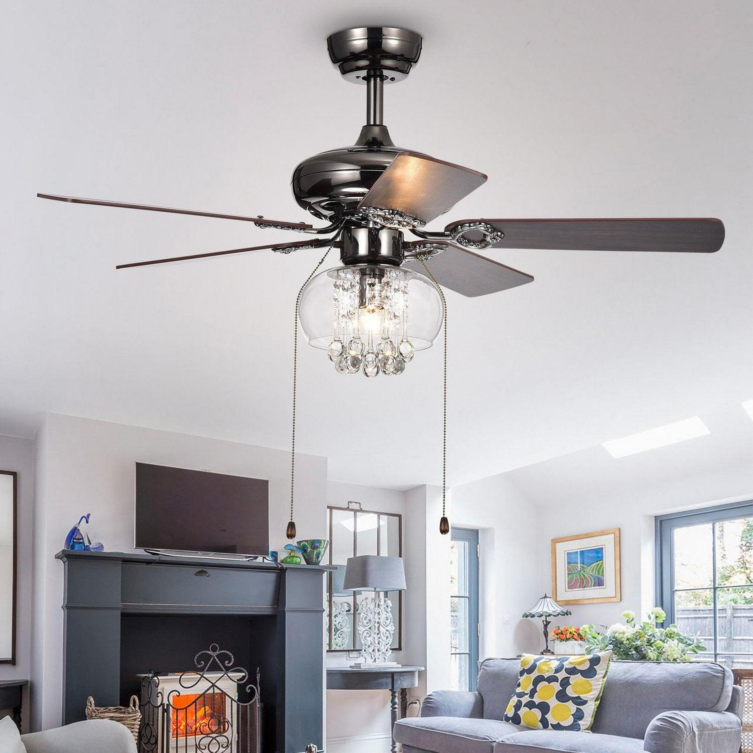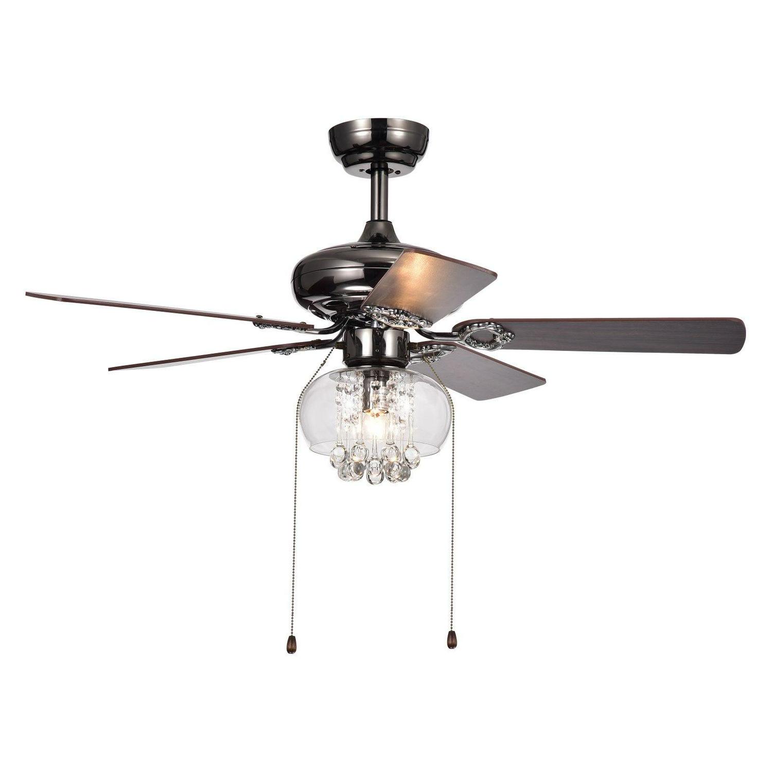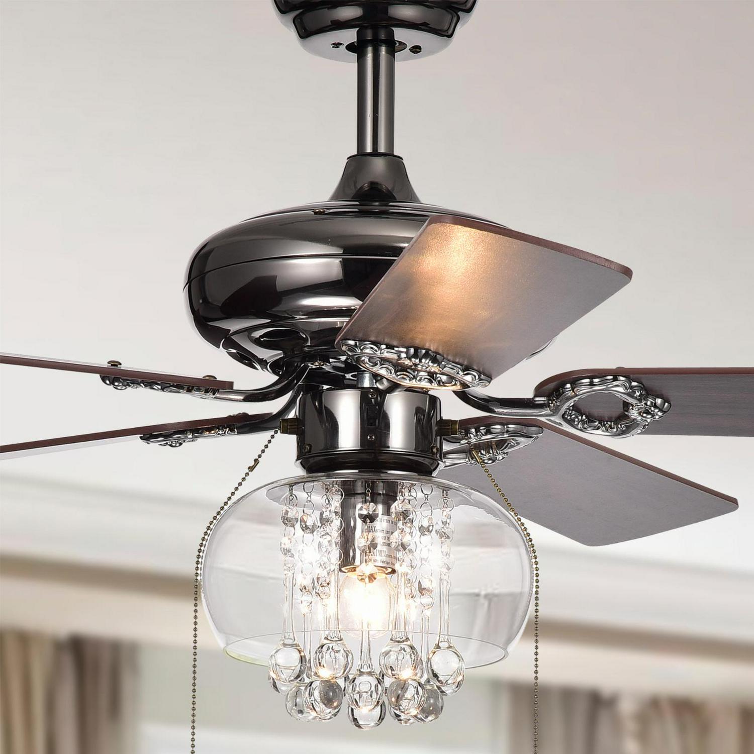 Warehouse of Tiffany Aequor 1-Light Glass and Crystal 5-Blade 53-Inch Pear Black Ceiling Fan (2 Color Option Blades)