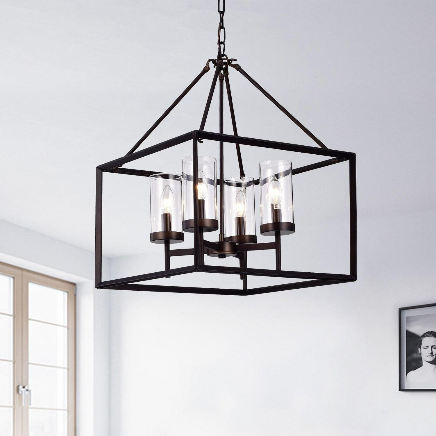 The Warehouse of Tiffany Anson RL8201AB Semi Flush Mount Light makes a one-of-a-kind modern addition to your living room, dining room, or foyer that provides plenty of light and a tasteful contemporary anchor point. This light comes with a semi-flush frame built from tough metal and finished in an appealing antique bronze. Wiring and a length of chain are included to help hang. The four socket centerpiece is supported and surrounded by an open cubic look. Each socket is rated for a 60W incandescent bulb and comes with a clear glass tube shade. The bulbs are not included.