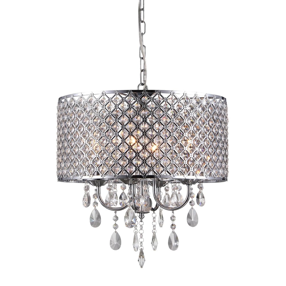 Warehouse of Tiffany 17″ Round Chrome Finish Crystal Chandelier with 4 Lights – 9′ x 17′ x 17′