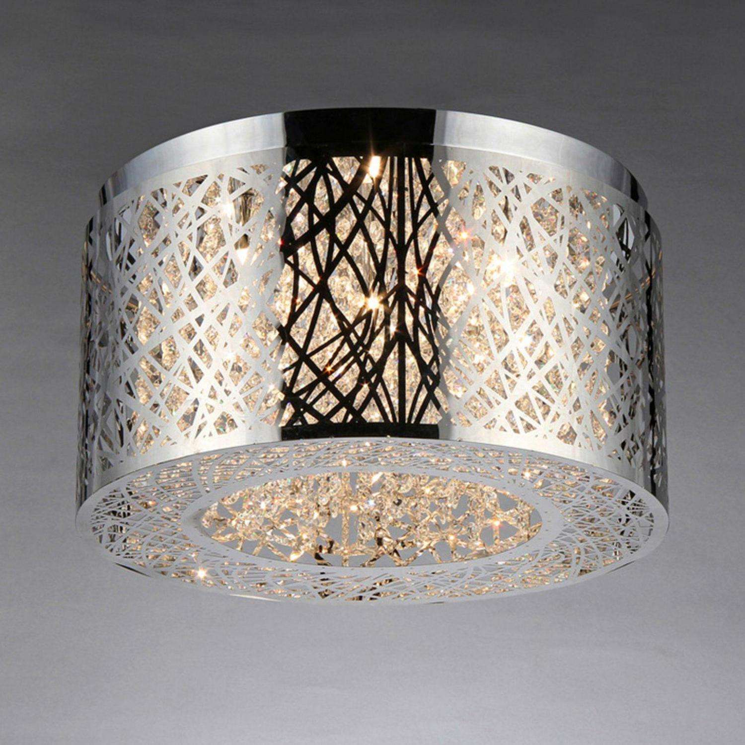 Bring modern glamour into your dining room or bedroom with this Warehouse of Tiffany RL7992 Rubens Chandelier. An abstract metal drum shade in polished chrome is filled with crystals that shimmer in the light. Bulbs not included.