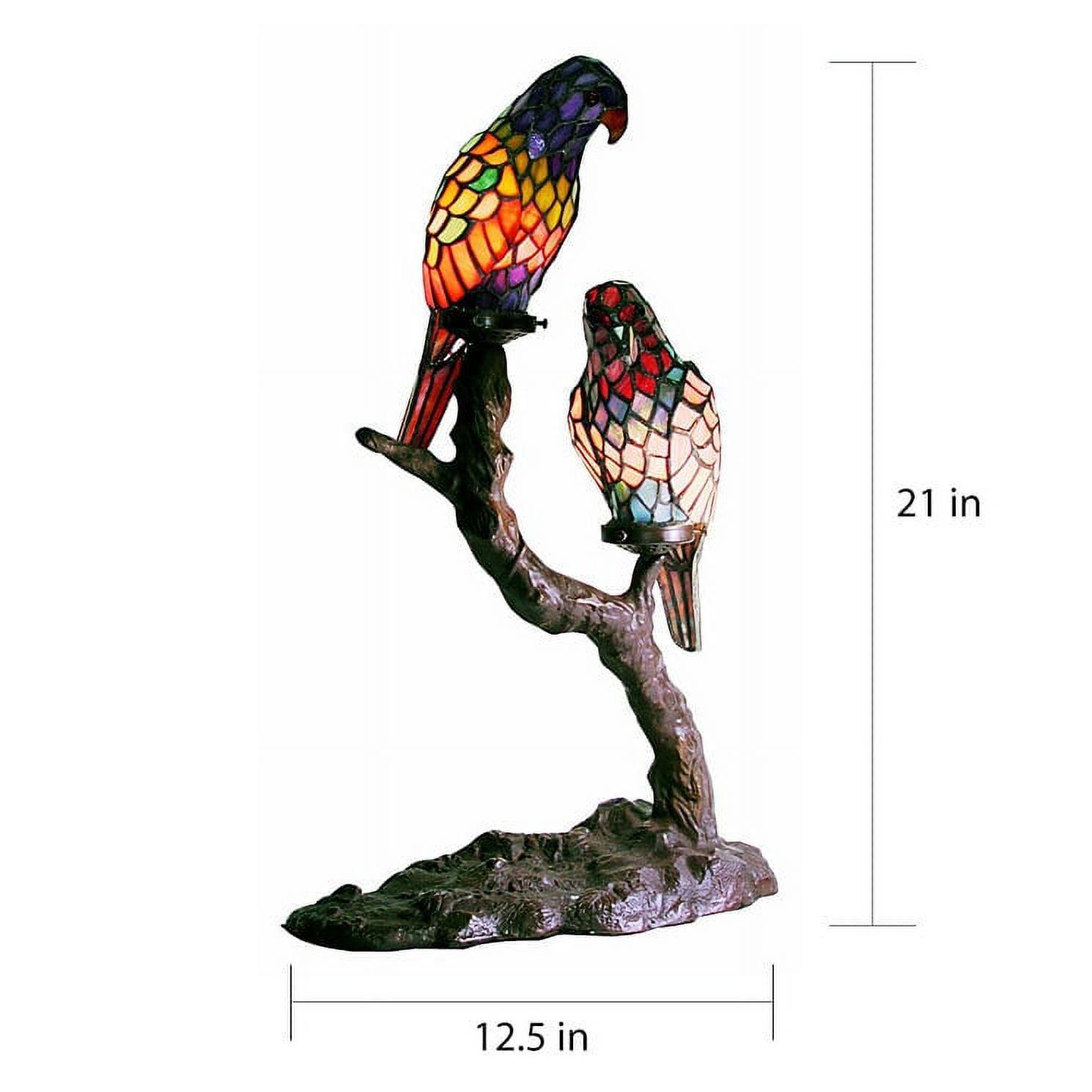 Personalize your home’s interior with this Warehouse of Tiffany Style Exotic Birds Accent Lamp. It has a unique two parrot design, featuring over 200 amber glass-stained pieces with green and bronze accents. This Tiffany-style tree lamp also includes a sturdy zinc base with a bronze finish. It’s suitable for use in a living room, entryway or a den.
