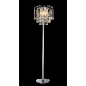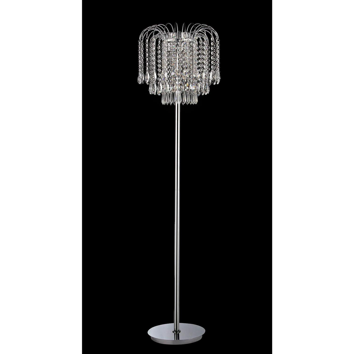 This floor lamp features a modern and elegant style for your home. Experience its brightness and sophisticated built in your living room, dining room, bed room or hallway. Its look consists of fabulous crystals and high polish chrome metal. Its total height is about 58 inches.