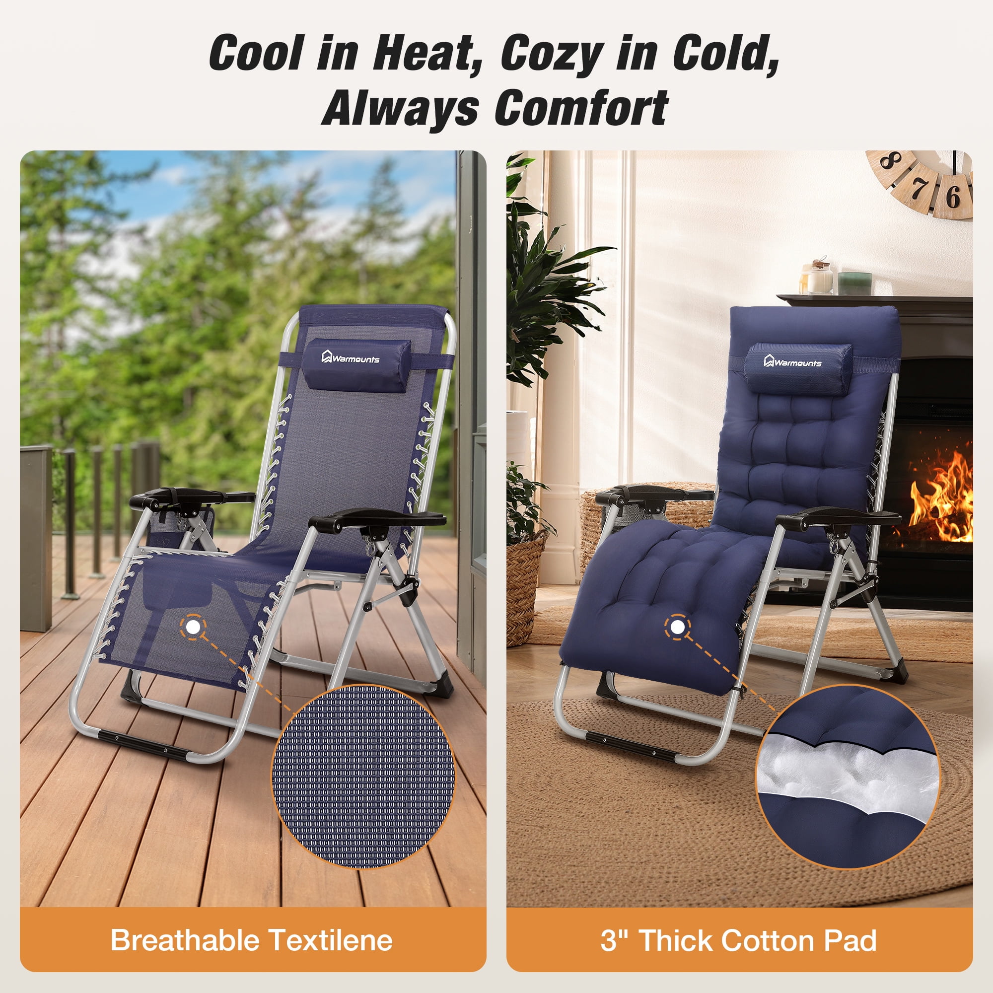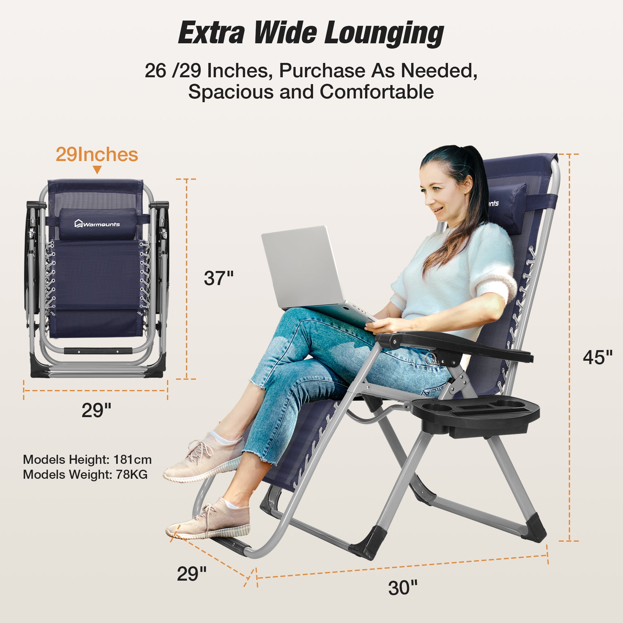 WARMOUNTS 29” XXL Oversized Zero Gravity Lounge Chair w/ Removable Cushion, Folding Patio Recline, 500lbs, for Yard, Lawn, Terraces, Balcony, Pool