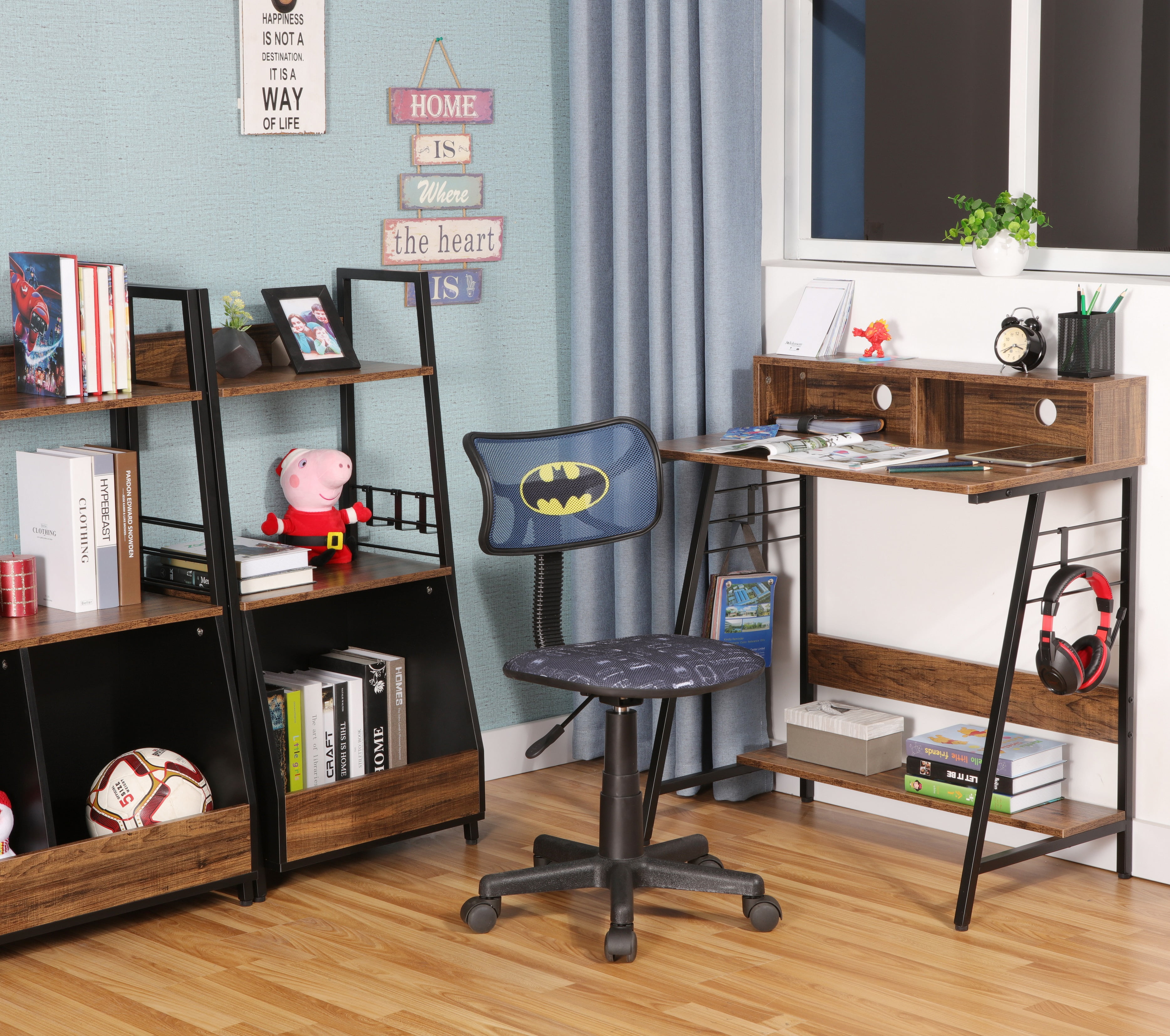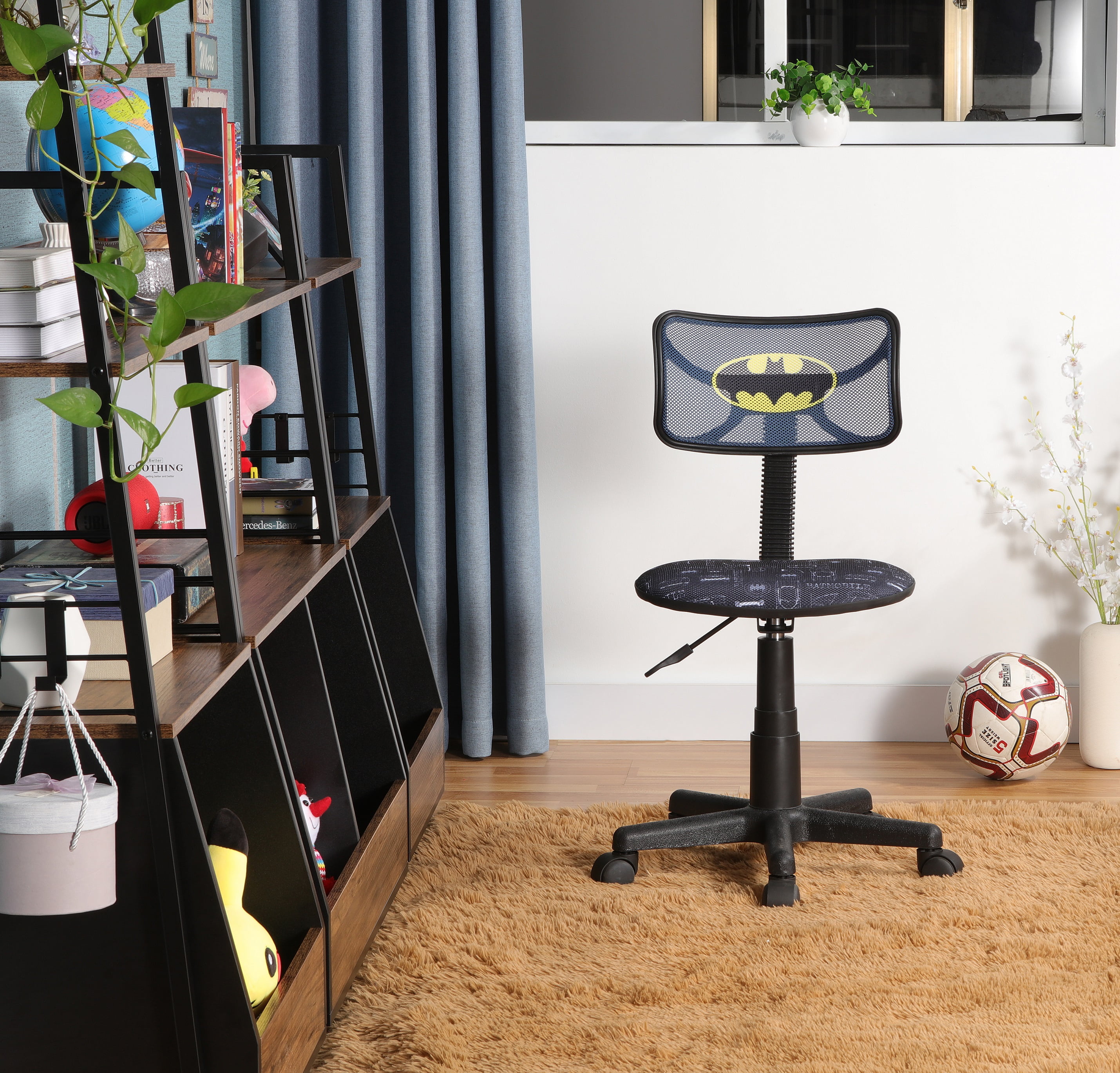 Measures: 21 x 23 x 35 Inches Made with breathable mesh seat fabric that allows air circulation for comfort Features graphics of Batman Spot clean for easy care Adjustable seat height Makes a fun update to your child or teen’s bedroom with this desk chair