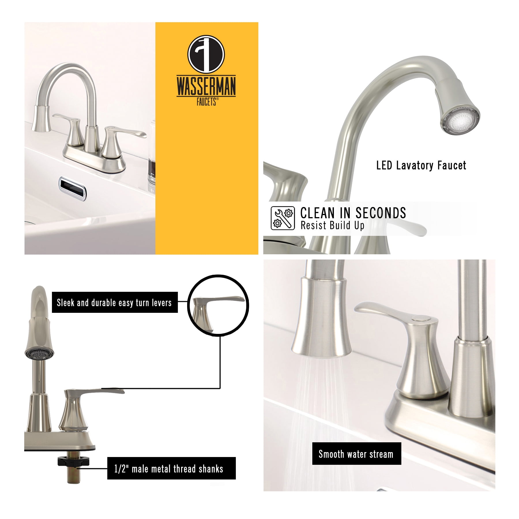 Wasserman 14167163 – Lavatory Bathroom Faucet with LED light with pop-up in Brushed Nickel