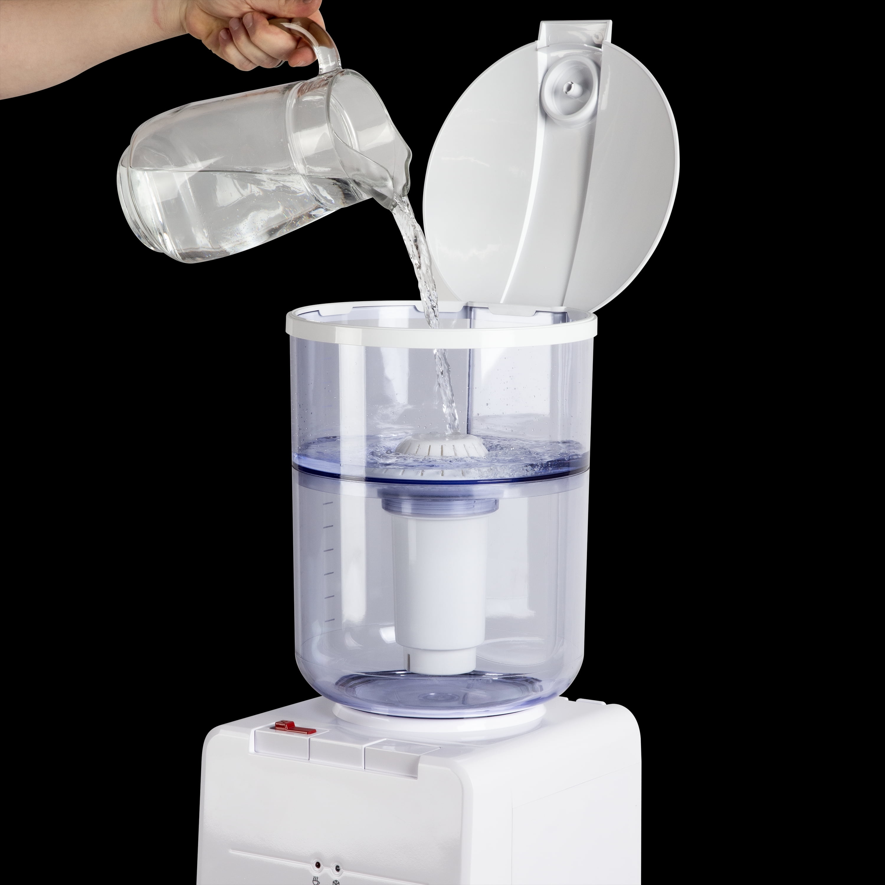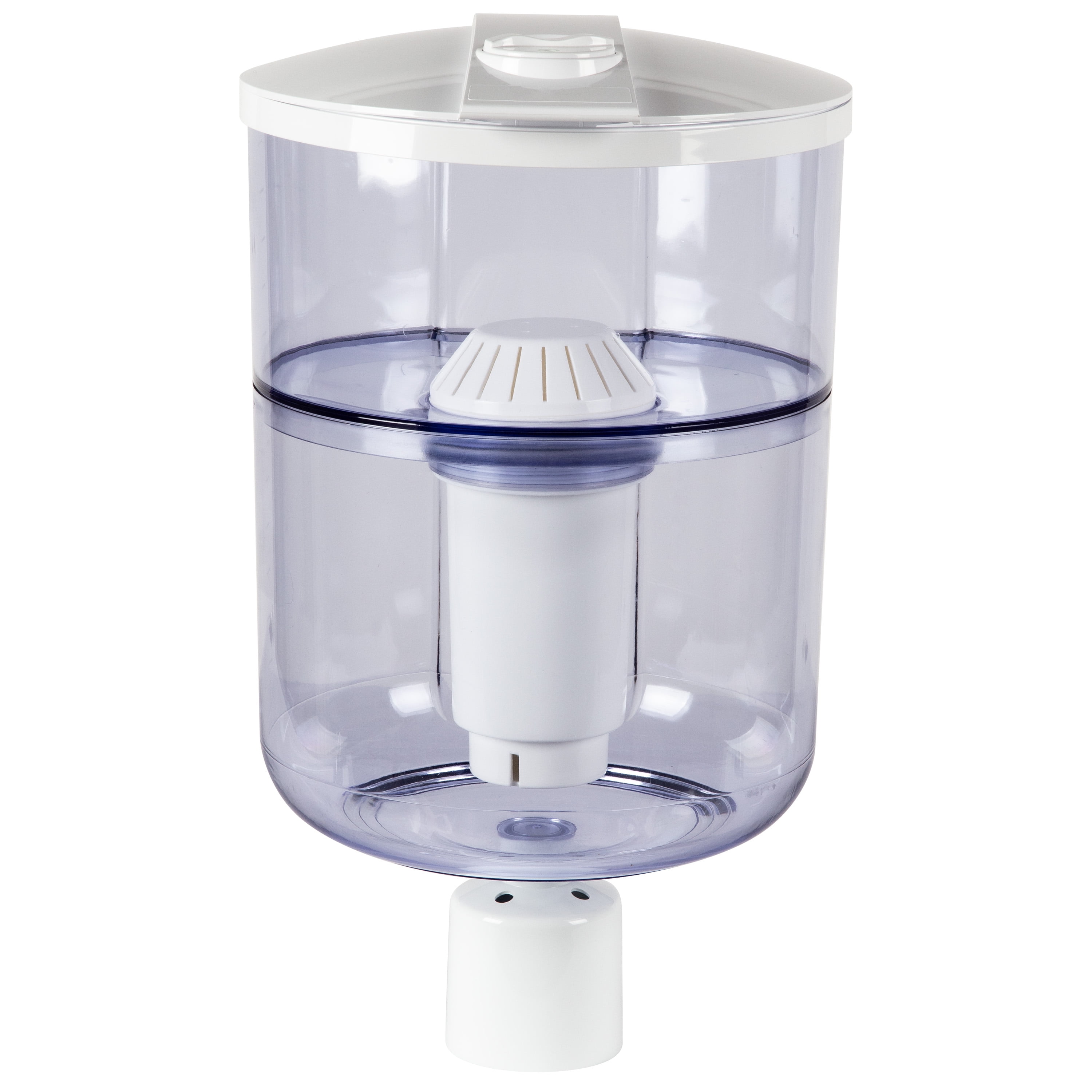 This Great Value top load dispenser and reusable tank combo are a full solution for eco friendly water filtration. Environmentally friendly alternative to bottled water jugs Filters sediment and chlorine, taste and odor for clean, refreshing water This water filtration system is BPA-free and FDA certified Easy-read, manual filter change indicator is included on the lid Replace the water filter quickly and easily approximately every 6 months or 211 gallons (equivalent to approximately 42 five-gallon jugs of water) Convenient – open the lid and pour tap water into the water filtration tank System includes one filtration tank and one long-life, multi-stage filter that lasts for up to 6 months or 42 5-gallon jugs of water GVWF filter is tested and certified by CSA International to the requirements of CSA B483.1 and NSF/ANSI Standard 42 to for the reduction of chlorine, taste and odor