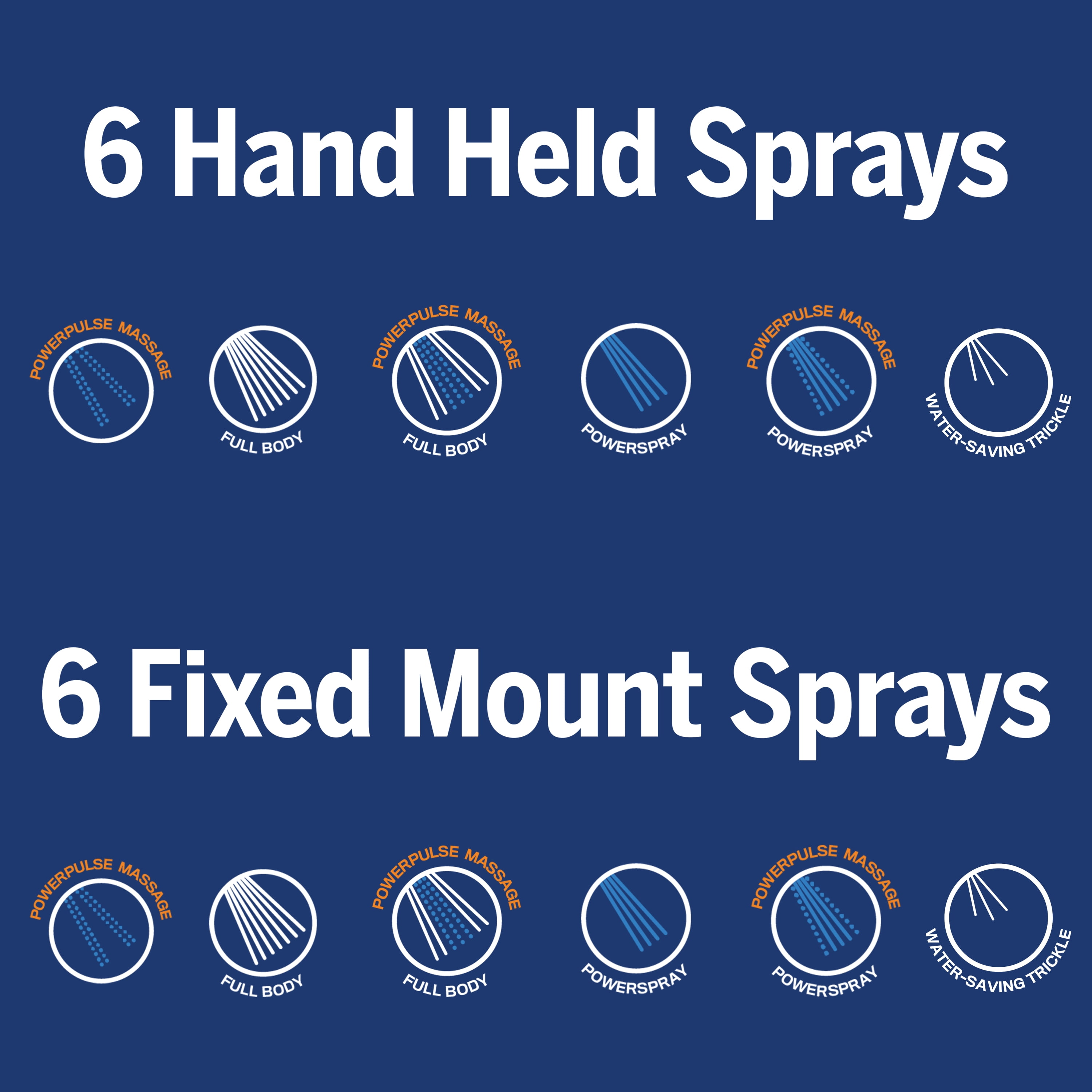 Waterpik 6 + 6 Mode Powerpulse Massage Dual Combination Shower Head, Chrome XET-633E/643E Enjoy 2 times the shower massage force Independent clinical testing shows that PowerPulse Massage helps soothe muscle tension, increase flexibility, and promotes restful sleep 94% of participants in an independent clinical study reported relief of muscle tension and stiffness within just 2 minutes of using the PowerPulse Massage spray Waterpik PowerPulse is the FDA registered shower head with wellness benefits PowerPulse delivers jets of massaging water to sooth away stiffness, increase mobility, and relieve discomfort Lifetime limited warranty ensures optimal shower head performance Includes a 5 Foot hose Chrome finish Installs in just minutes 6 Fixed Mount spray modes: PowerPulse Massage, Full Body Spray, Full Body Spray + PowerPulse Massage, PowerSpray, PowerSpray + PowerPulse Massage, Water Saving Trickle 6 Hand Held spray modes: PowerPulse Massage, Full Body Spray, Full Body Spray + PowerPulse Massage, PowerSpray, PowerSpray + PowerPulse Massage, Water Saving Trickle 5 inch diameter shower face 1.8 GPM flow rate 2-in-1 dual shower head system with 3-way diverter so you can choose the convenience of a hand held shower head, relaxing full body coverage of the large rainfall drencher shower head, or both at the same time Anti-clog nozzles Great for bathing kids or pets and cleaning the shower