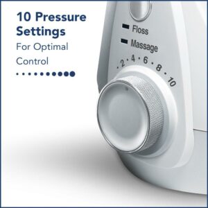 The Easy and More Effective Way to Floss. Flow rate per minute is 400 mL,Healthier Gums and Brighter Teeth in Just a Minute a Day. Pulses per minute is Pressure Settings and Pressure range 10 to 100 PSI, 90 Seconds of Water Capacity, 7 Water Flossing Tips, and a Tip Storage Case,120V, 60Hz, 12.5W