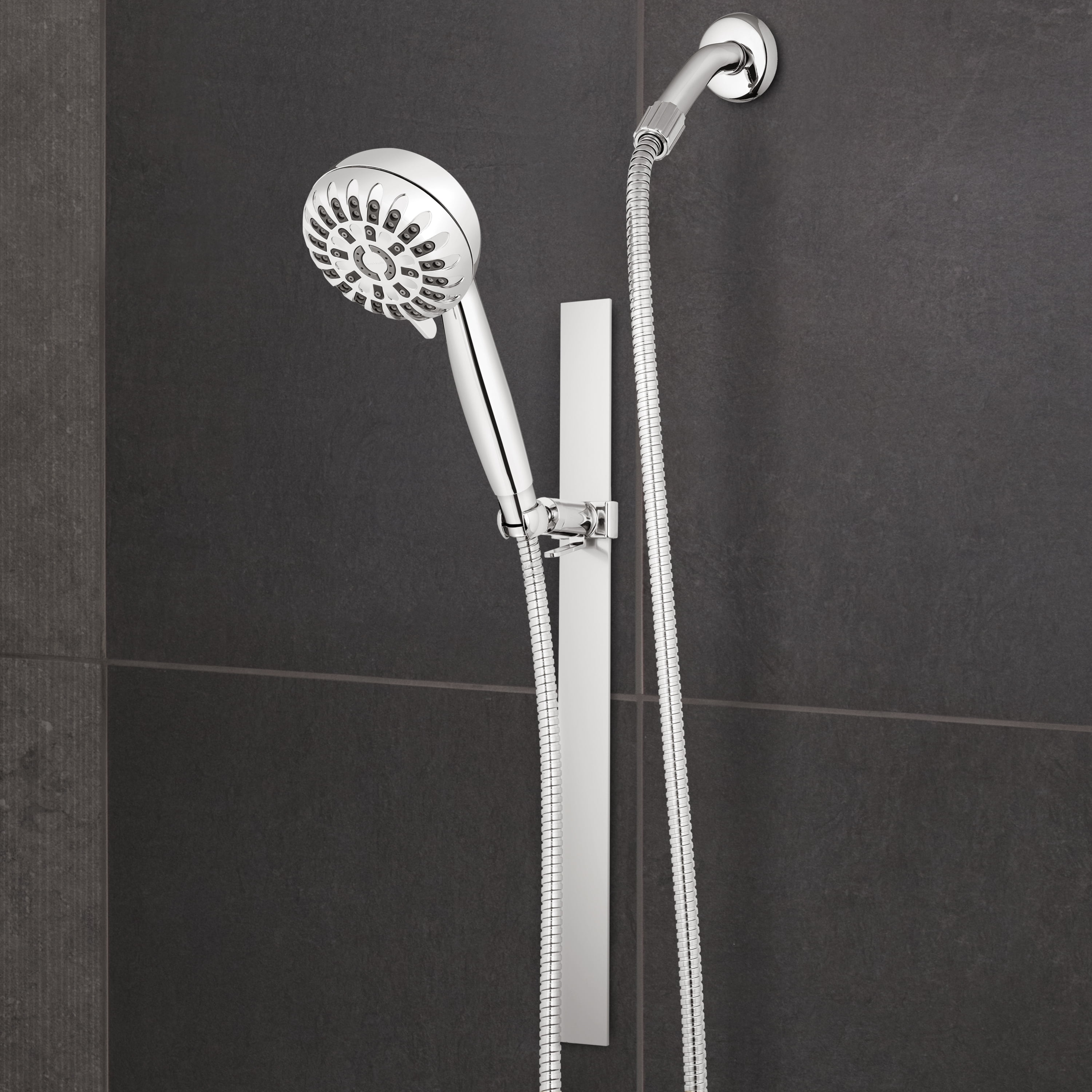 This innovative Waterpik shower system offers a sleek 20-inch metal rail with a sliding bracket and a powerful 7-mode shower head featuring PowerPulse. Now you can quickly customize your shower height by sliding the bracket up and down the rail in one simple motion. Made with rust resistant materials, the stainless-steel rail mounts flush to your shower wall for a contemporary and convenient look.