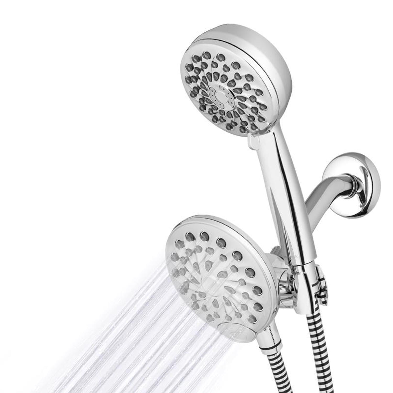 2-in-1 shower system Anti-Clog Nozzles FDA Registered Shower Head Hand Shower with Flexible 5-foot Hose Installs in Minutes Therapeutic Strength Massage Up to 2X Massage Force vs. Other Retail Market Shower Heads