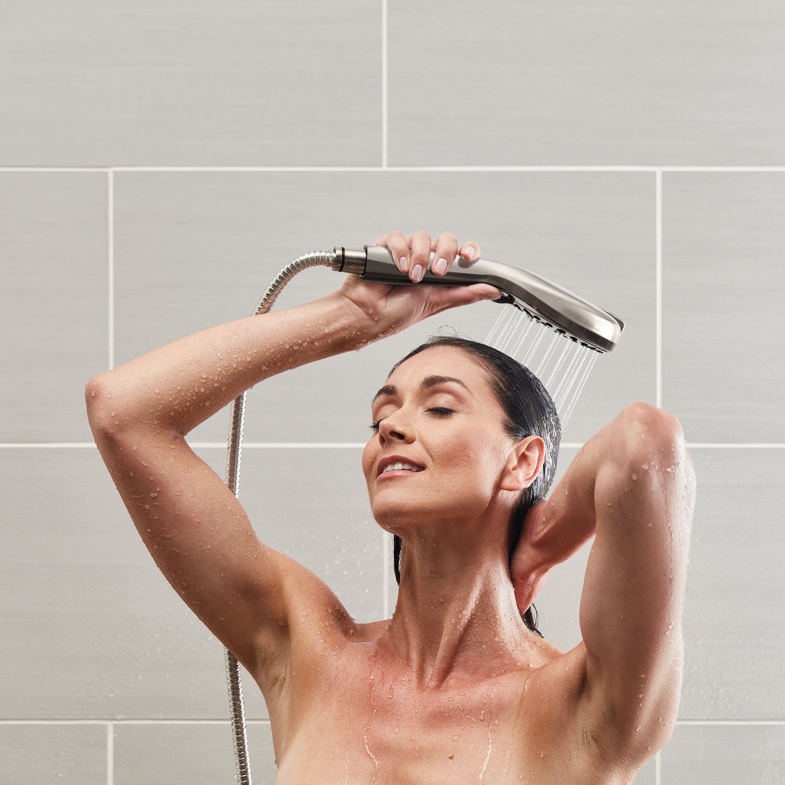 Discover the easy way to power rinse your shower. With a simple click, ShowerClean PRO transforms from a luxury shower head into a powerful pressure rinser. The built in PowerJet technology delivers a powerful fan of water to target specific areas, making your cleaning process easier! The Power Jet’s unique technology produces a targeted blast of water that delivers a powerful, oscillating rinsing action. The 6-foot flexible metal hose adds convenience for easy shower cleaning and bathing children or pets. When you’re not cleaning the shower, relax and rejuvenate with 6 additional shower spray settings, including PowerPulse Therapeutic Strength Massage. PowerPulse Massage is clinically shown to help soothe muscle tension, increase flexibility, and promote restful sleep.