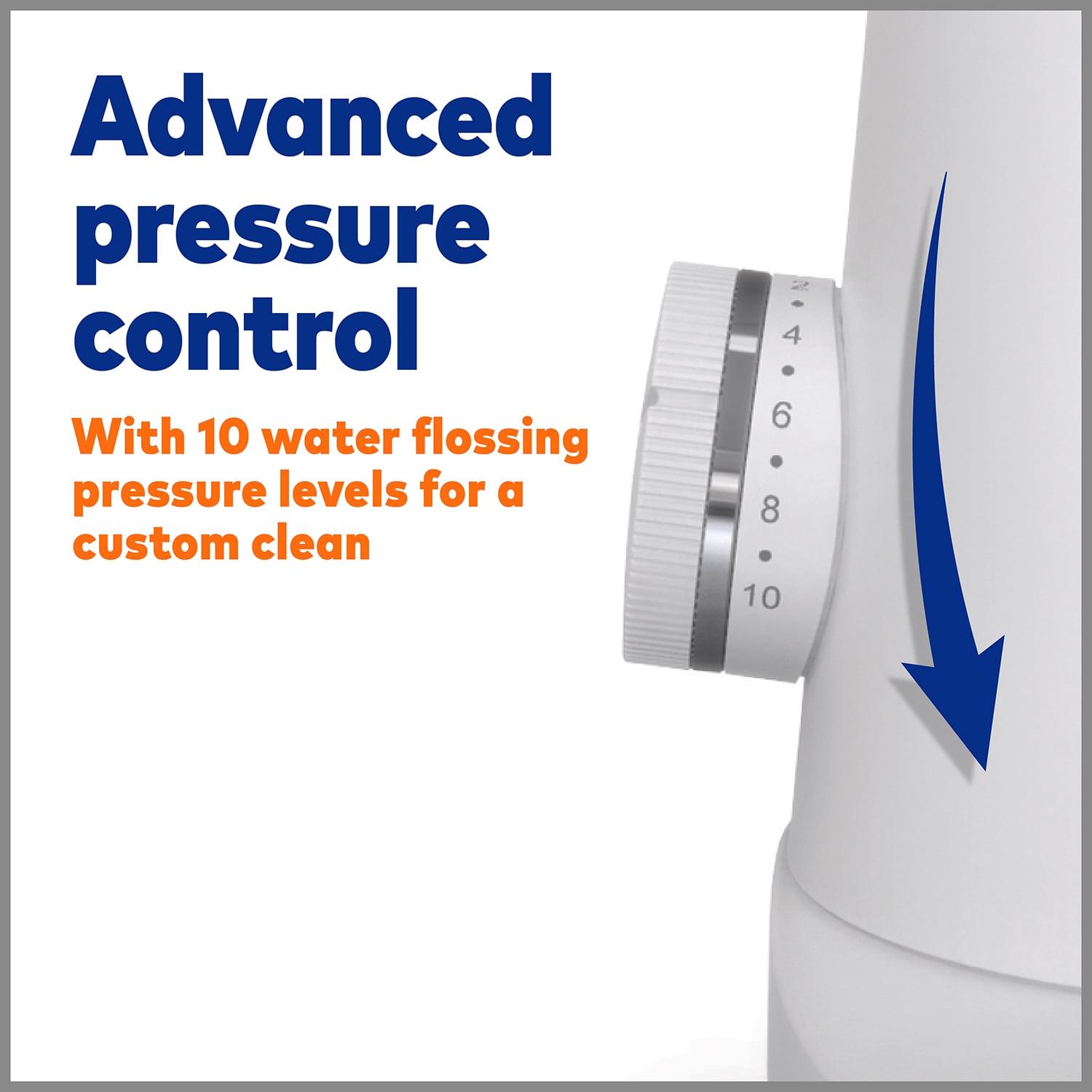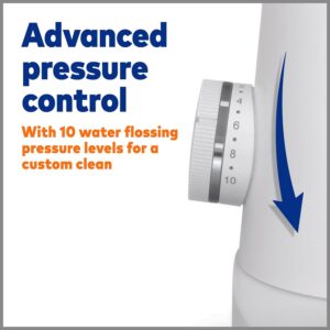 – Features: Patented flossing brush head, 10 pressure settings, a contemporary compact design, 15-ounce covered reservoir with 60+ seconds of water capacity, 2-minute timer with 30 second pacer, and a premium toothbrush travel case