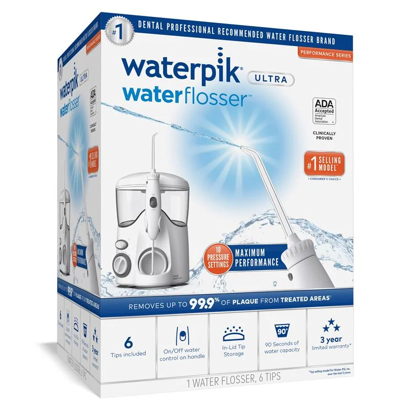 Waterpik Ultra Water Flosser with 10 Settings, 6 Tips, ADA Accepted, White