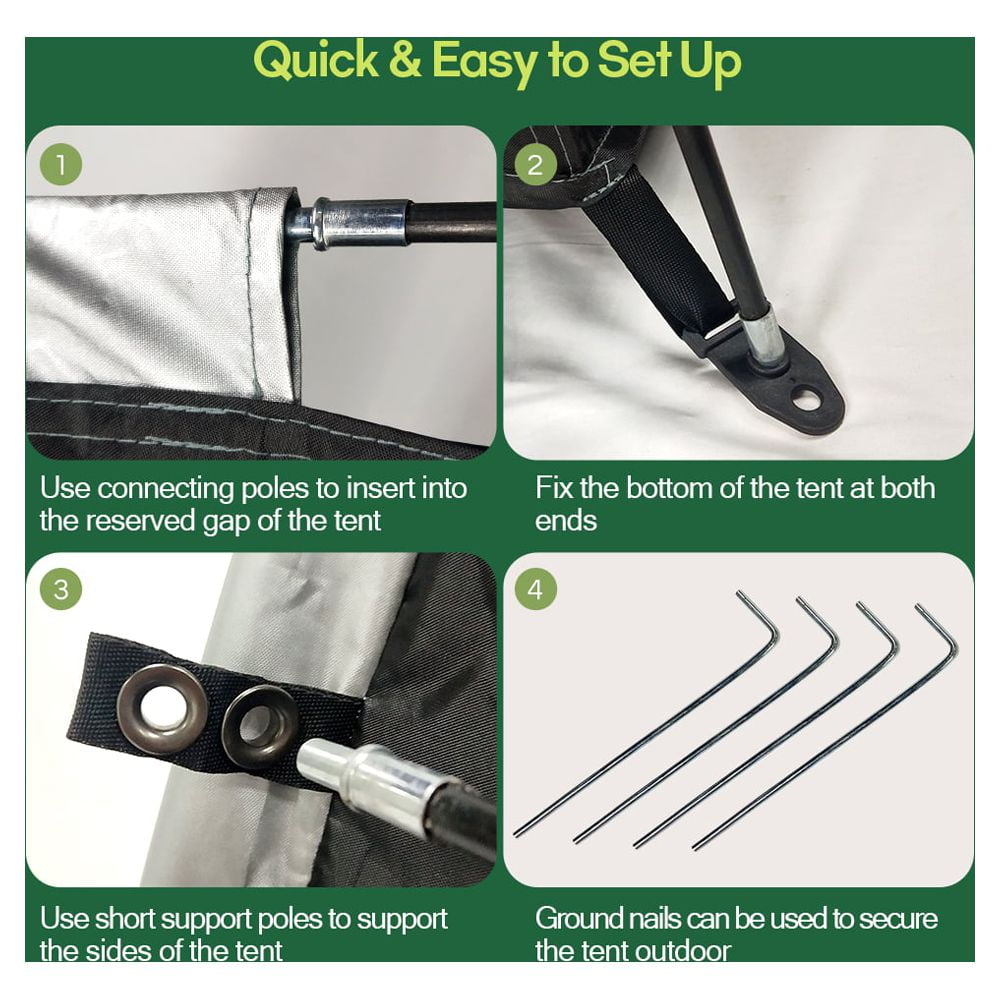 Large enough for 2-3 bikes Portable storage – home and away Bike storage and more for your Garden or Yard A practical low cost storage shelter Come with a handy carry bag Easy to assemble Waterproof & UV protection