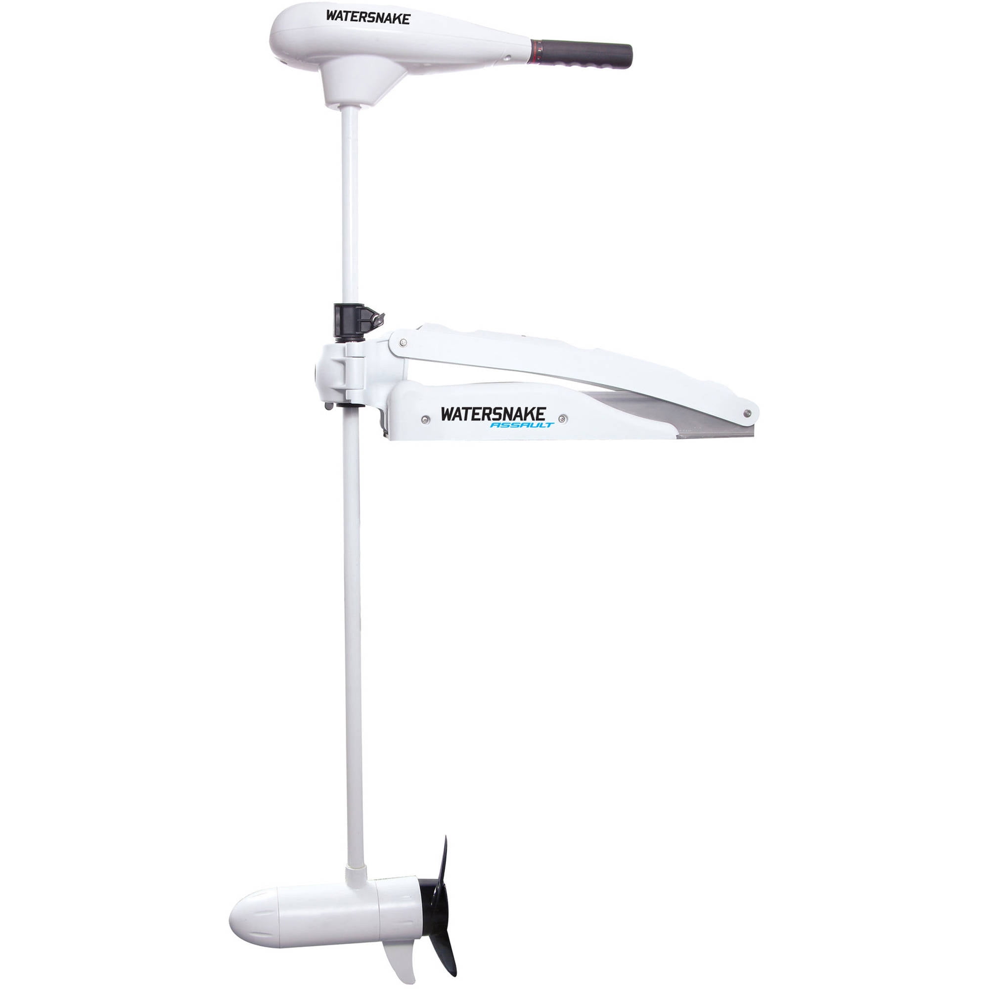 Watersnake Assault SWS 54/54 Bow Mount: Use the Watersnake Assault Trolling Motor SWS 54/54 on its own or pair it with additional boating parts and accessories to keep a boat maintained and operating efficiently. Universal design is suitable for a variety of fishing boats Bow mount High- and low-speed controls, speeds: 5/2 Bow mount trolling motor features both a forward and reverse switch Extendable hand tiller steering Thrust: 54 lbs Volts: 12V Amps: max 50 Shaft: 54″ bow, stainless steel Prop: 3-blade, weed less design Heavy-duty aluminum scissor mount Can be used as a replacement or to upgrade a boat Bracket and battery not included 1-year warranty included, contact distributor for additional information.