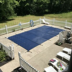 The WaterWarden in-ground mesh rectangle safety pool cover is manufactured in adherence to strict quality standards. It features top-of-the-line, complete 2-ply strap webbing throughout the cover, for unparalleled strength. The fine, lightweight mesh material allows rain to seep through into the pool but screens out leaves, twigs and other debris. Available in a variety of sizes and step configurations to best meet your needs.