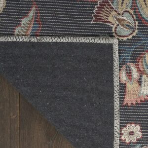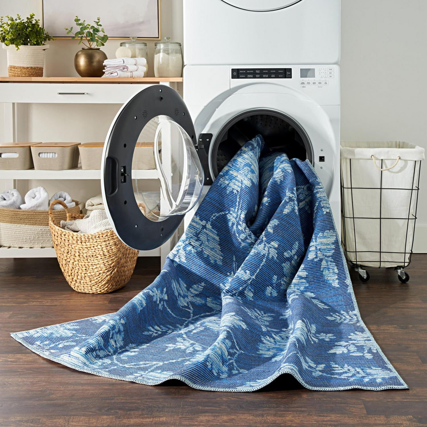 From classic floral designs to elegant damask patterns, the Waverly Washables Rug Collection brings timeless style to your home. Designed with a modern sensibility, these contemporary rugs are crafted from a wonderfully soft blend of chenille and cotton yarns. The lightweight, flatwoven construction not only makes placement a breeze, but simplifies cleaning: just toss into your washing machine. With its dainty floral pattern, this contemporary design from the Waverly Washables Rug Collection adds a charming aesthetic to your living room or bedroom. Vintage shades of charcoal grey, blue, and burgundy impart a classic sense of style that complements farmhouse, country, and cottage settings alike. Machine-made from soft chenille and cotton yarns in a lightweight, flatweave construction that s machine washable for easy upkeep.