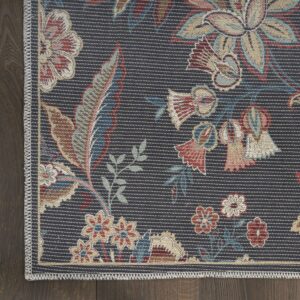 Waverly Machine Washable Floral Traditional Charcoal Area Rug, 5′ x 7′