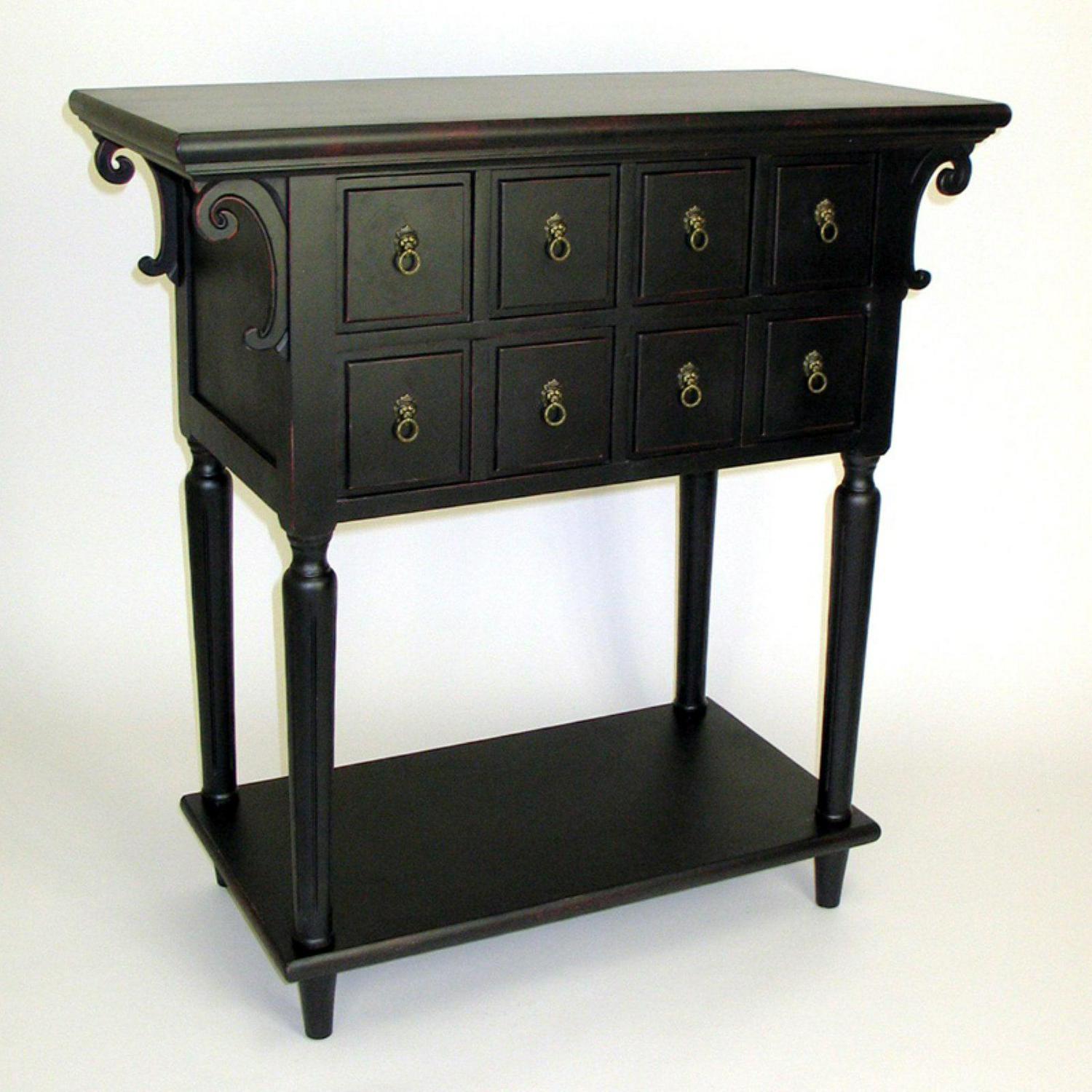 Wayborn comes with a single purpose-to achieve synergy in business elevation with our customers by offering exquisite and grandeur home furnishing products and unsurpassed quality of services. This attractive console has many drawers for storage. There are 4 small drawers on the top row and 2 larger drawers on the second row. There is one shelf at the bottom. The console is constructed of plantation hardwood.