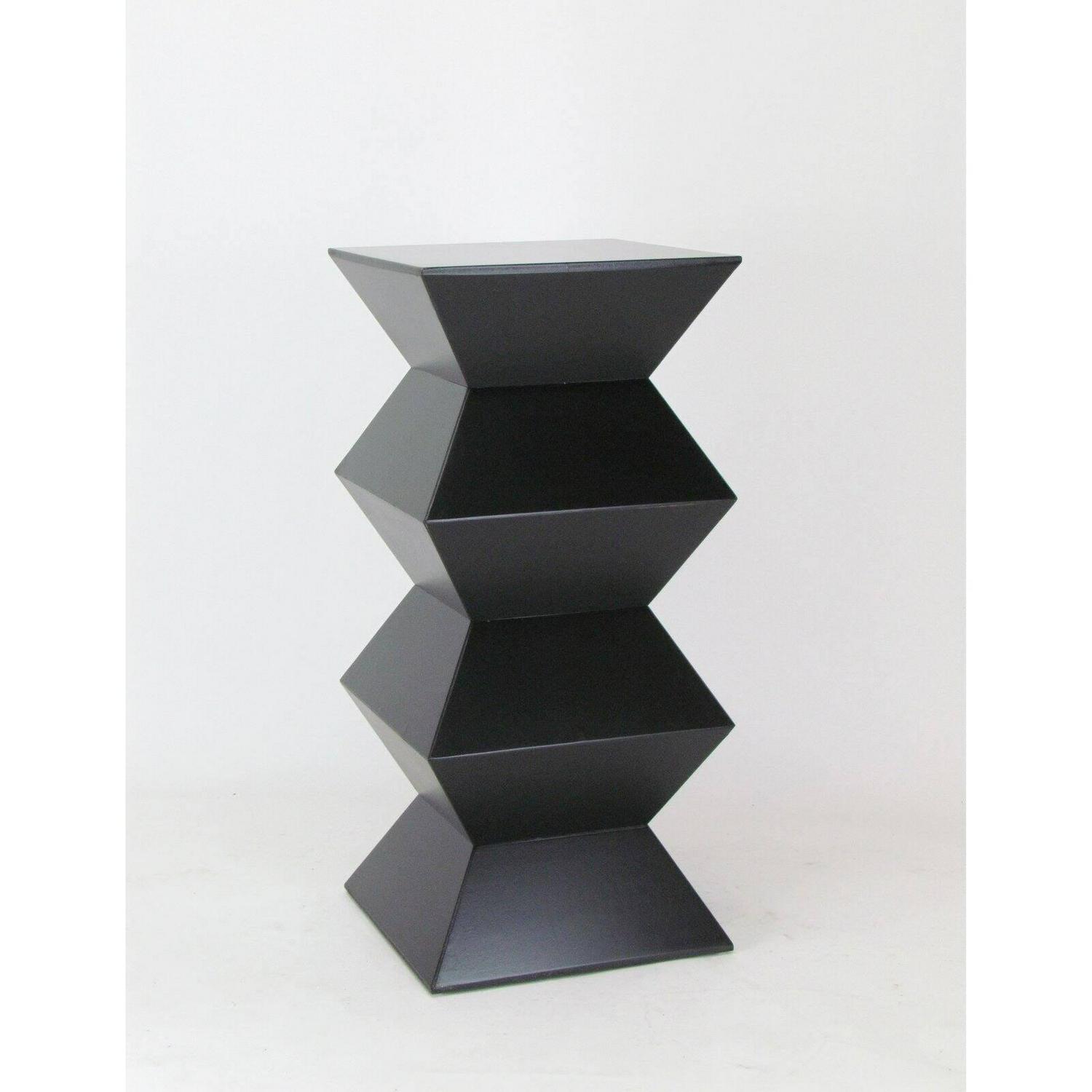 A stacked pyramid design lends intrigue to the Wayborn Obit Pedestal. This sturdy wood pedestal features an antique black finish that’s versatile in many homes.