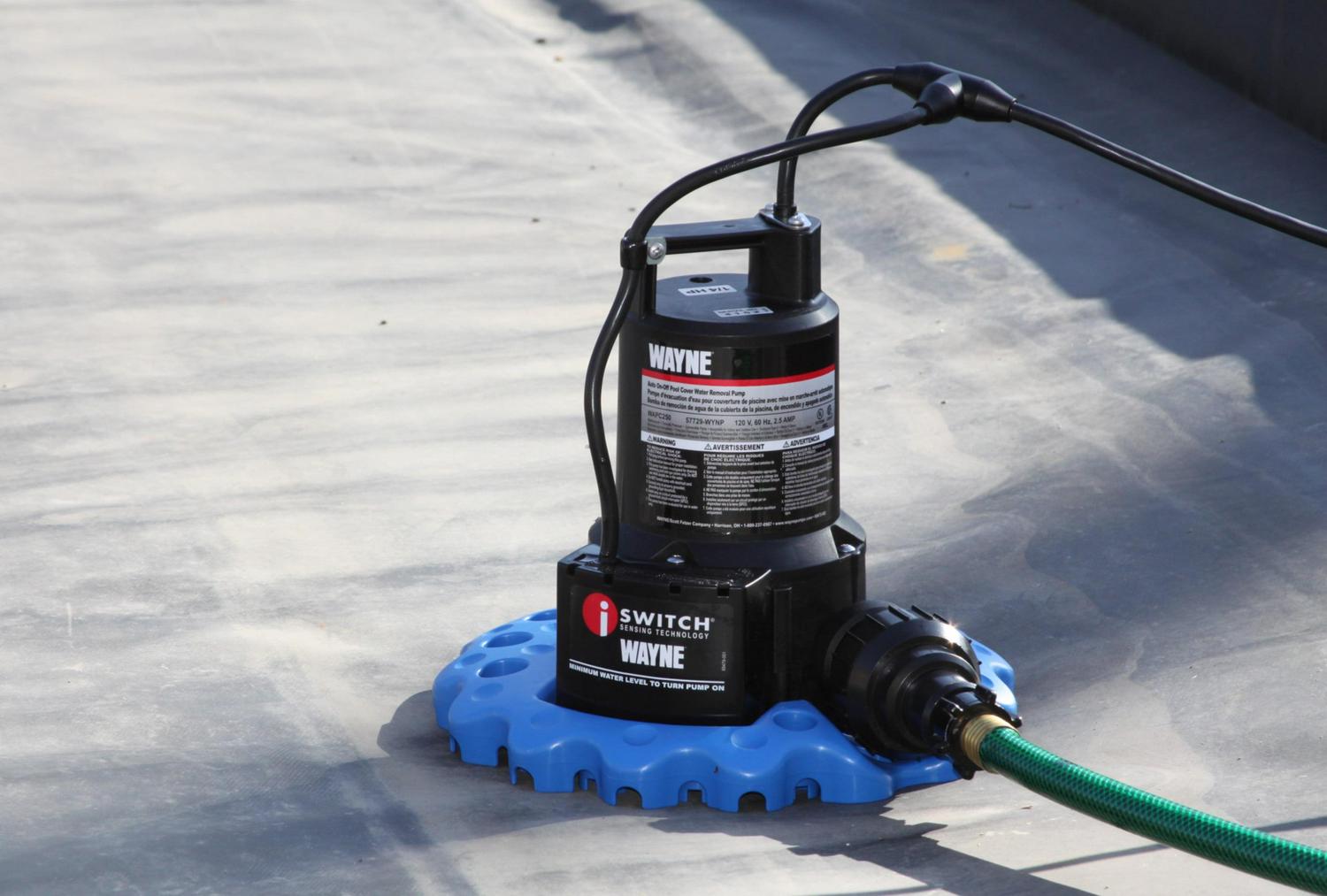The WAYNE WAPC250 1/4 HP pump will minimize the stress on your pool cover by removing up to 3,000 Gallons Per Hour off it. It is easy to place the pump using our included pull to shore rope. It is easy to maintain because the automatic freeze protection protects the pump throughout the winter months and is warrantied for 3 years.