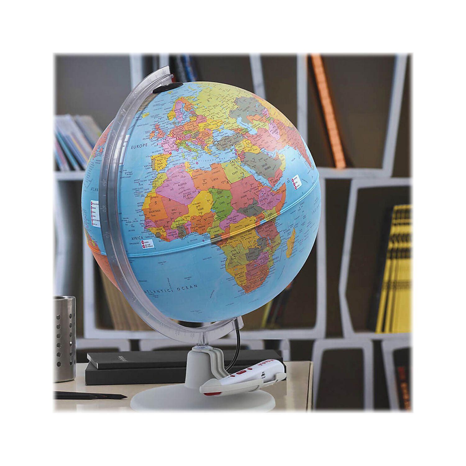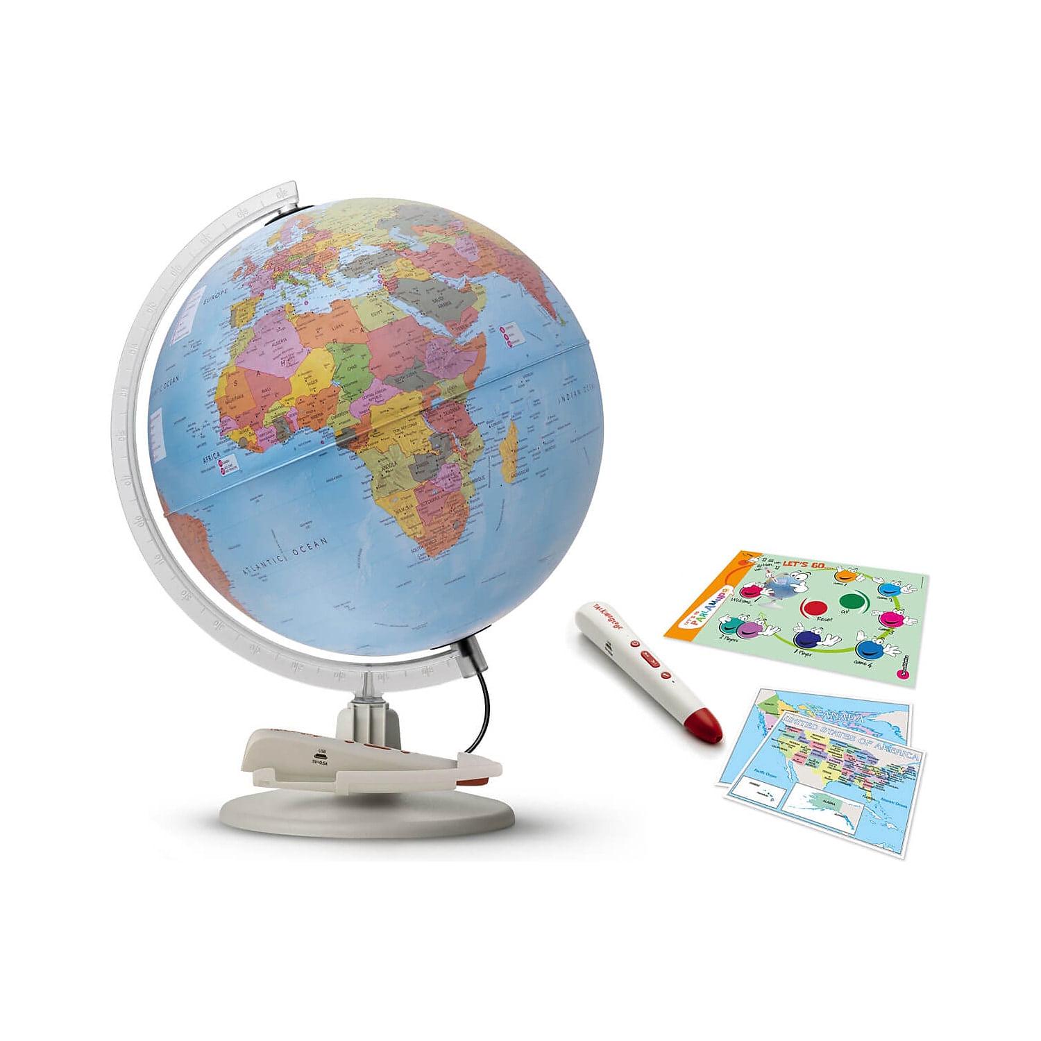 The WaypointGeographic Parlamondo interactive talking globe is a feature-packed globe that makes learning enjoyable for every age group and is intended to grow your geographic knowledge of the world in many ways. From its rechargeable talking pen loaded with seven different languages to its single- and multi-user games, users of all ages will enjoy learning and testing their geographic knowledge. Was it mentioned this globe also can be illuminated The USB cord used to illuminate the globe can be easily removed when not needed, making it easy to use the globe anywhere you choose.