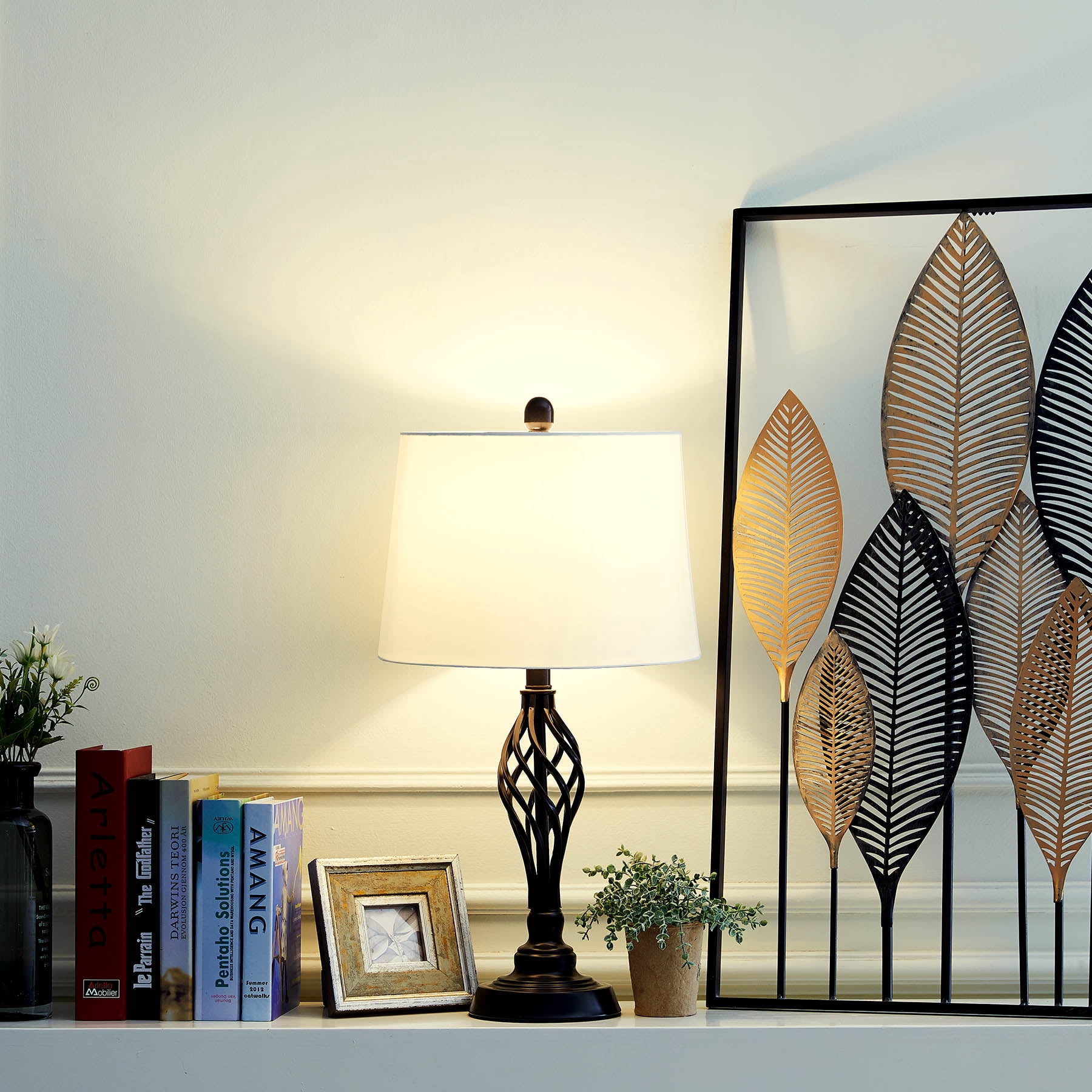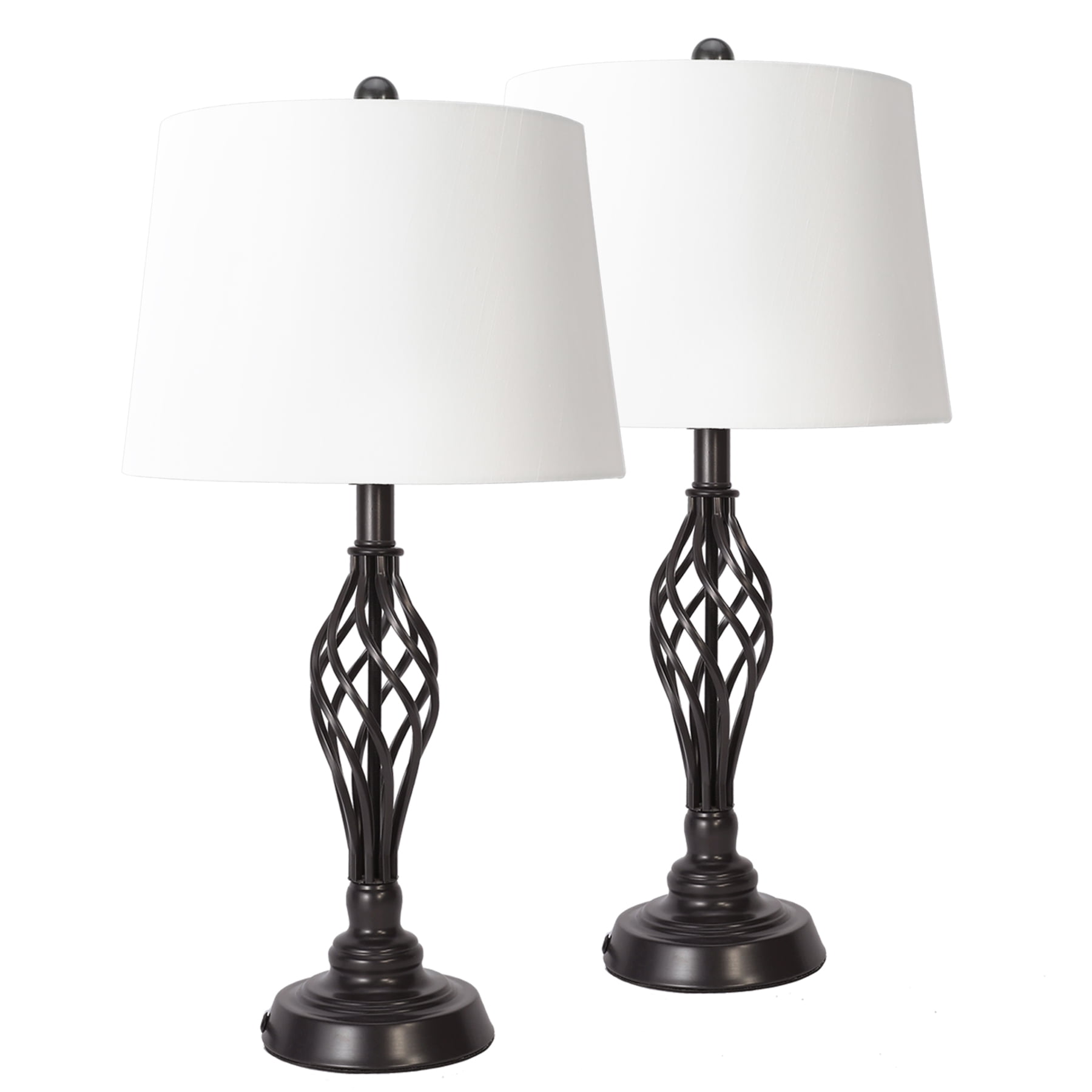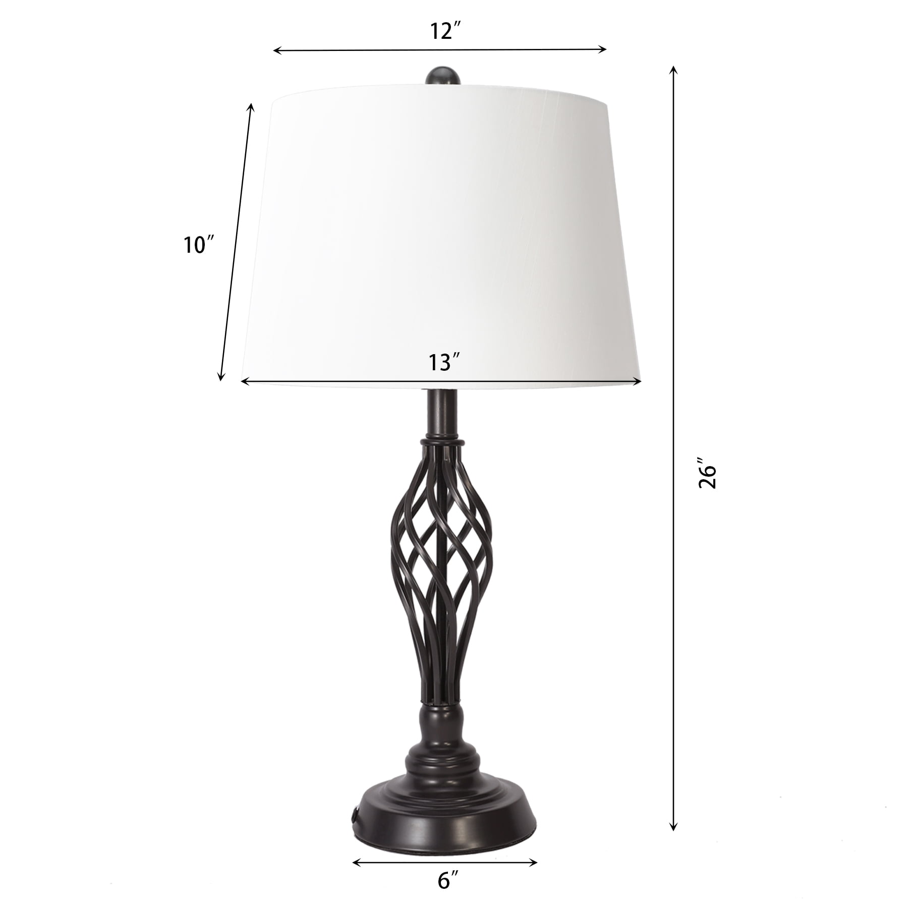 STYLISH DESIGN: The white fabric hardback shade complements the oil rubbed bronze finish, enhancing any farmhouse or traditional décor. These side table lamps feature a transitional style, making a versatile art deco addition to any room in your home. COMPACT SIZE: With a 13 ” lamp shade diameter and a 26″ height, these small table lamps will fit perfectly on your child’s dresser, bedroom nightstand, home office desk – or bedside the sofa as a reading lamp. STURDY METAL FRAME: Worried about lamps toppling over too easily? Heavy-duty metal construction makes our desk lamps sturdy and durable, – place them anywhere without fear. The oil-rubbed bronze finish provides resistance to corrosion for an extended lifetime. INLINE SWITCH: Easily turn the light on and off with the inline switch The 5-foot (60”) cord allows you to place the light fixture anywhere in your room no matter how far away the socket is. Specifications: Overall Dimensions Height: 26” Lamp Shade Dimensions Height: 10″ Diameter: 13″ Base Dimensions Diameter: 6″ Cord: 60” Black cord Voltage: 110v Wattage: 150w (Max) Item Weight: 8.83 pounds Product Dimensions: 13 x 13 x 26 inches Assembled Height: 26 inches Assembled Length: 13 inches Assembled Width: 13 inches Style: Traditional Color: Bronze Shape: Dome Material: Metal Finish Types: Oil Rubbed Number of Lights: 2 Voltage: 110 Volts Special Features: 2-way switching Shade Color: White Shade Material: Fabric Light Direction: Up/Down Light Source: Corded Electric Switch Style: Rotary Package List: 2 set of table lamp 1 x IM
