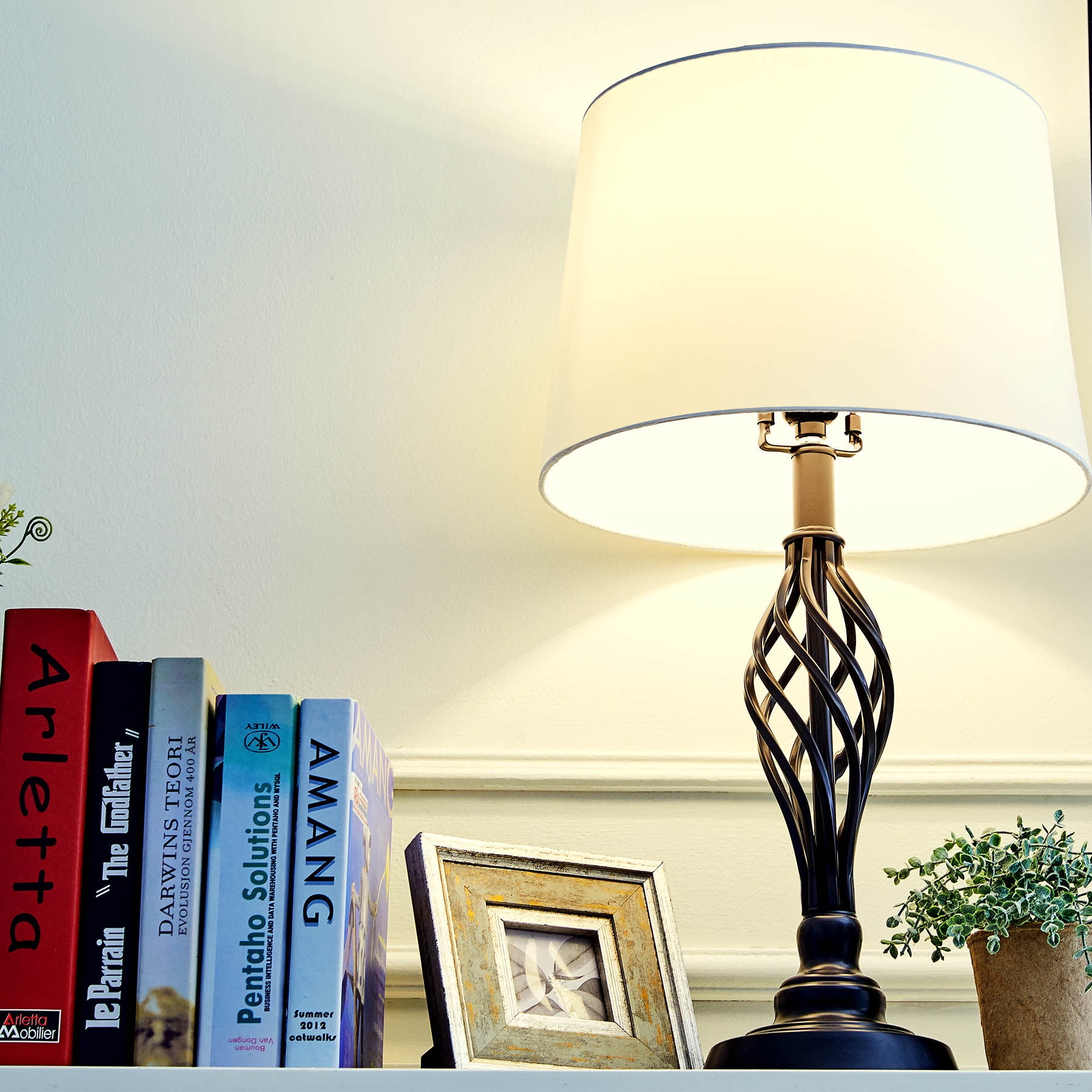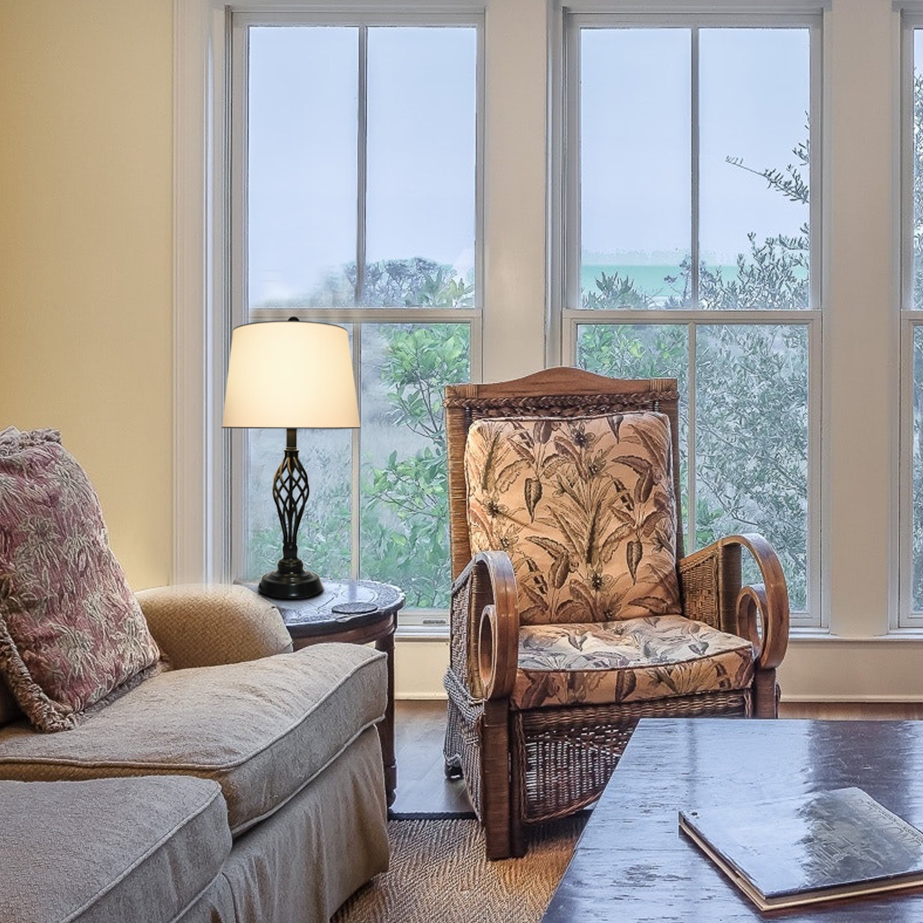 The Ivory lamp shade adds a modern look and distributes light evenly to relieve eye fatigue as you soak in cinema or lounge with literature. The iron bronze finish and ivory shade recall an earthen vintage mood that sets a warm and homey atmosphere. Our lamp has a standard E26 socket rated up to 150W, fitting most LED, CFL, incandescent, and other bulbs. Bask in their warm and flattering light.