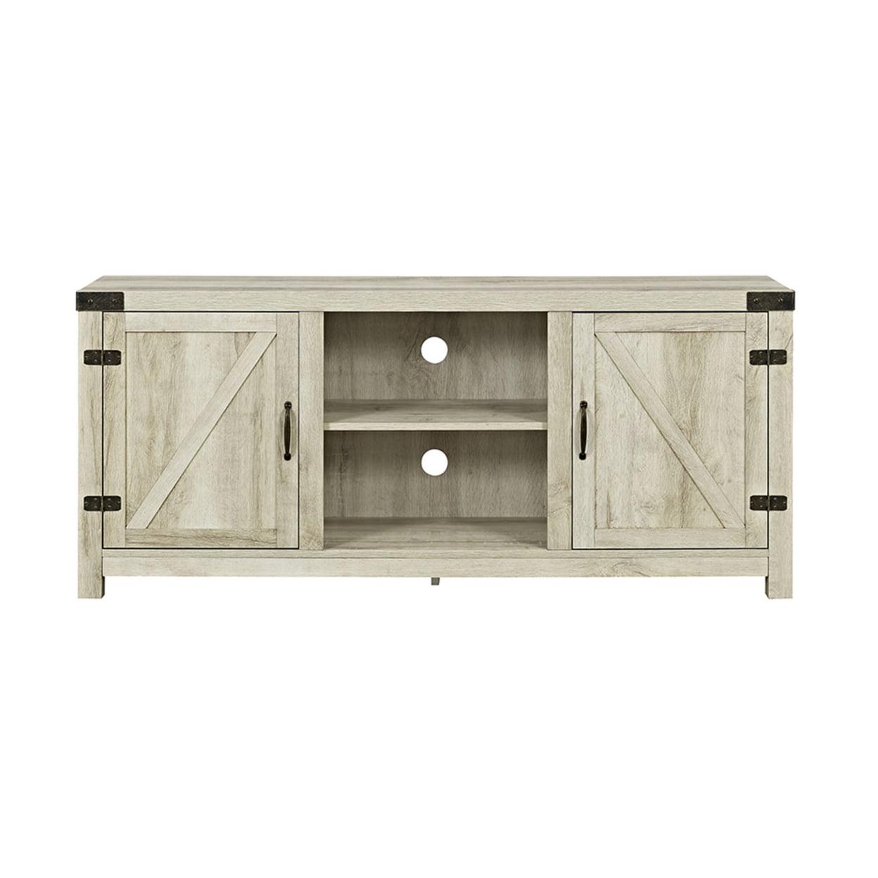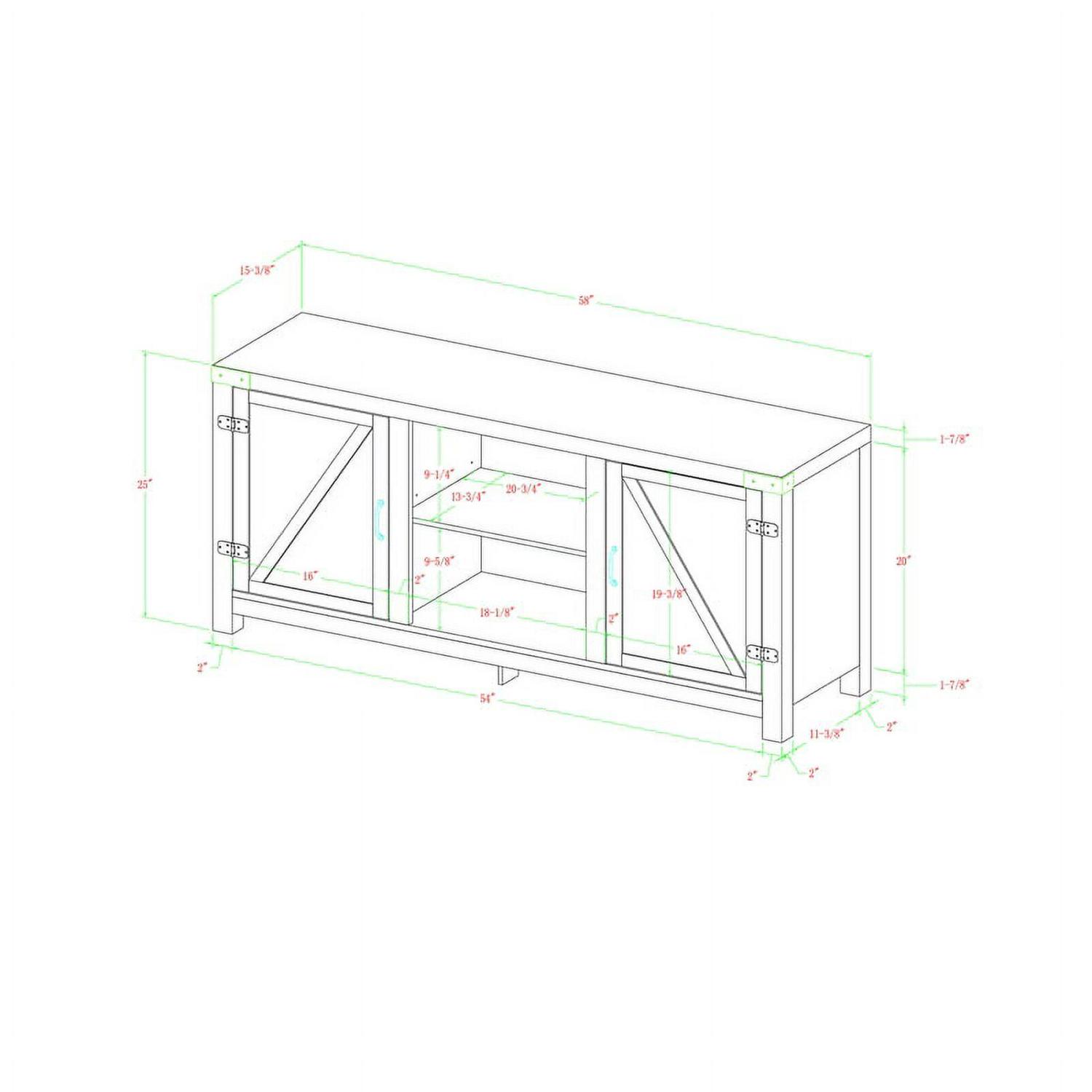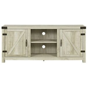 WE Furniture 58″ Barn Door TV Stand with Side Doors Include our rustic barn door style TV stand in your home to not only enhance the decor of your living area, but create ample storage for all of your media, accessories, and more. Constructed of high-grade MDF, this durable, long lasting stand supports most TVs up to 65″, It’s the perfect addition that will keep your living room looking neat and give it a homespun feel. Ships ready-to-assemble with step-by-step instructions.