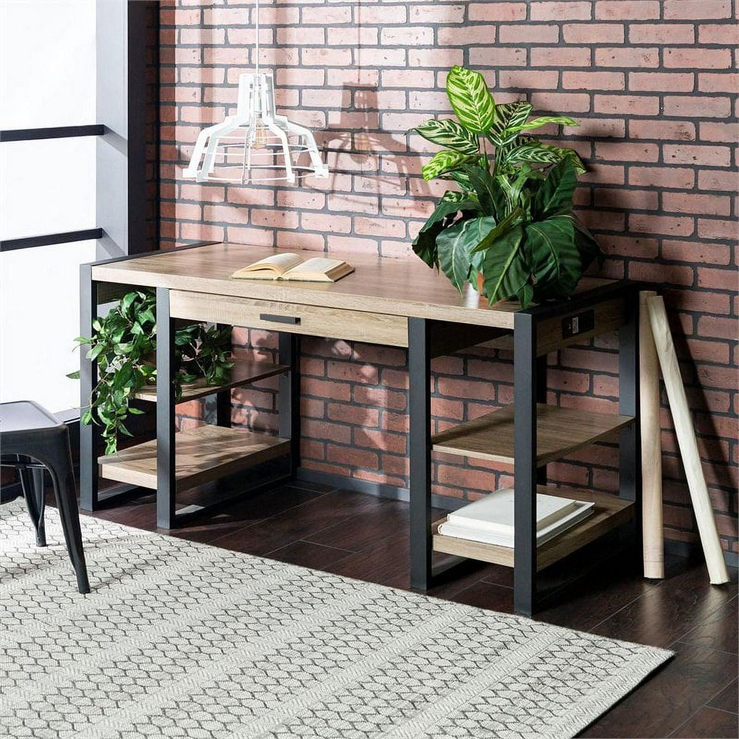 WE Furniture Home Office 60″ Wood Storage Computer Desk – Driftwood Complete your home office with this urban tech desk. Features a built in USB port and AC plug-in for additional power supply. Its open side shelving and pull-out drawer provide ample storage space to fit your office essentials. Crafted from high-grade MDF and powder-coated metal legs for a sturdy yet stylish office desk. Ships ready-to-assemble with step by step instructions