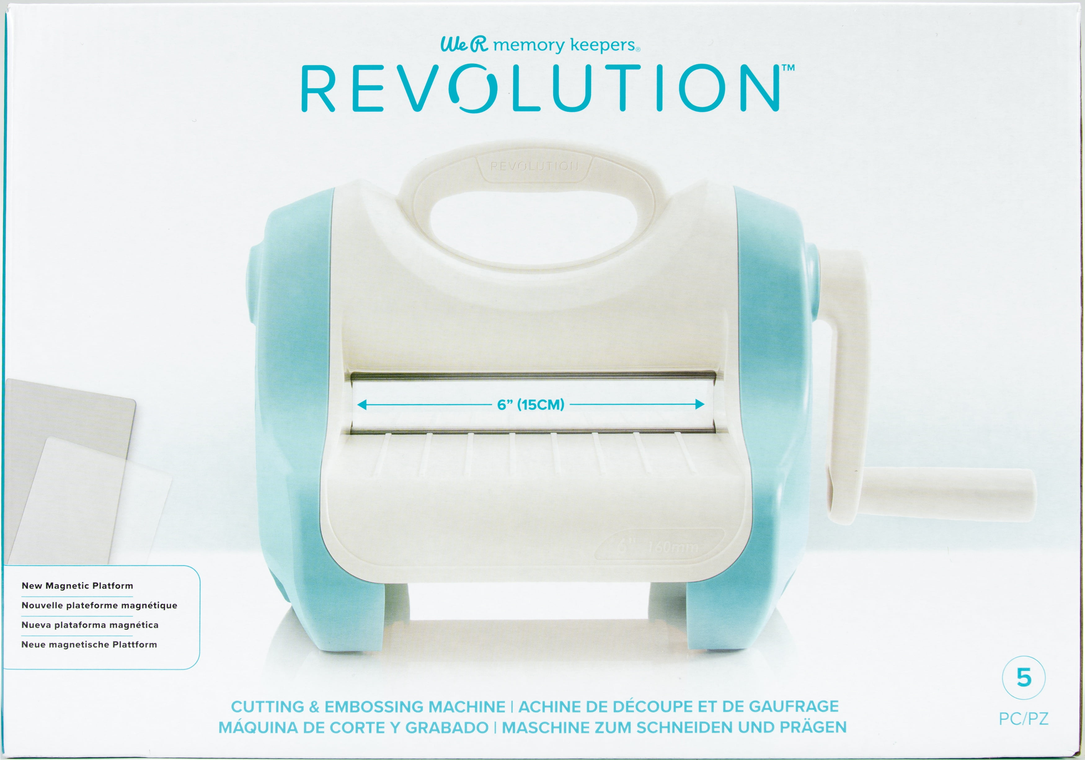 This machine is compatible with most leading brand dies and embossing folders. Die-cutting has never been easier with this innovative magnetic platform system. The clear cutting plate allows for visual confirmation, and is perfect for cutting our stamped images. This 14x10x11.5 inch package contains one machine, one Revolution tool, one platform, one magnetic mat, one die plate and one embossing plate. Imported.