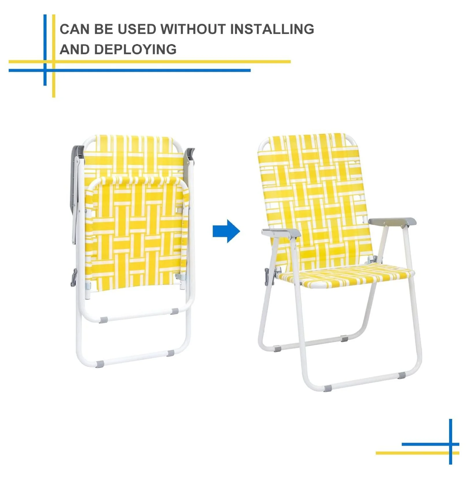 Webbed Lawn Chairs Set of 2, Foldable Metal Patio Chairs Stable Steel Outdoor Chair for Camping, Fishing, Beach, Poolside, Backyard and BBQ (Yellow&White)