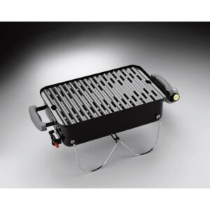– Go-Anywhere grill with plated-steel legs pivot to lock lid in place for carrying