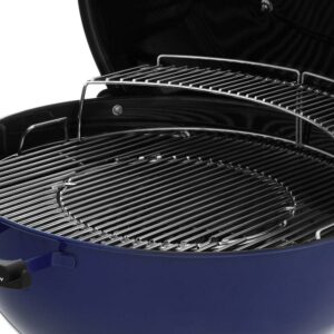 The Weber Master-Touch 22″ Charcoal Grill in Deep Ocean Blue is a great addition to the Weber lineup. The grill is outfitted with innovative heavy-duty Gourmet BBQ System cooking grates, a two-part grate system that may be used in tandem with Weber’s Gourmet BBQ System cookware collection. To use the cookware, the center insert grate is removed and the cookware installed. The outer grates remain in place so additional foods may be grilled. The cookware collection (sold separately) includes a porcelain-enameled cast-iron Griddle, Sear Grate, Wok, plus a stainless steel Poultry Roaster and Pizza Stone with Carry Rack. Traditional grilling over the full grilling surface is accomplished with the insert grate and outer grates in place. The Master-Touch Charcoal Grill features many other benefits, such as taller legs to raise grill to optimal height and a shield on the lid handle to give extra protection to hands.