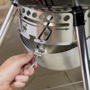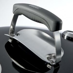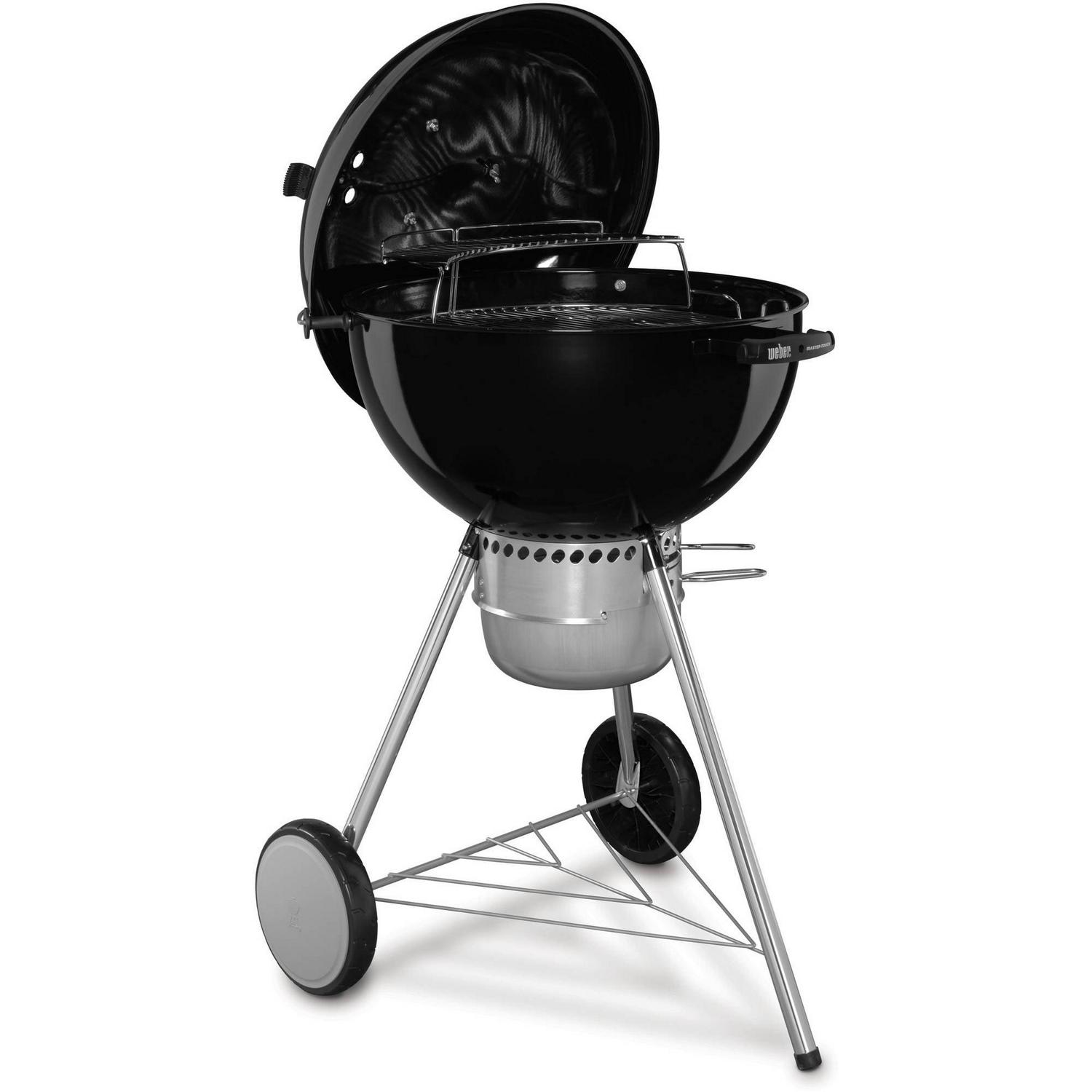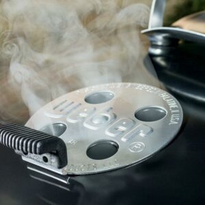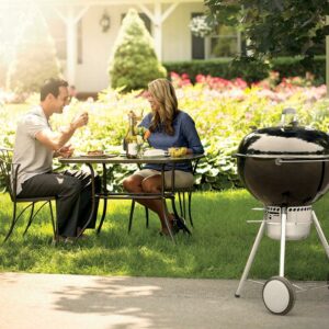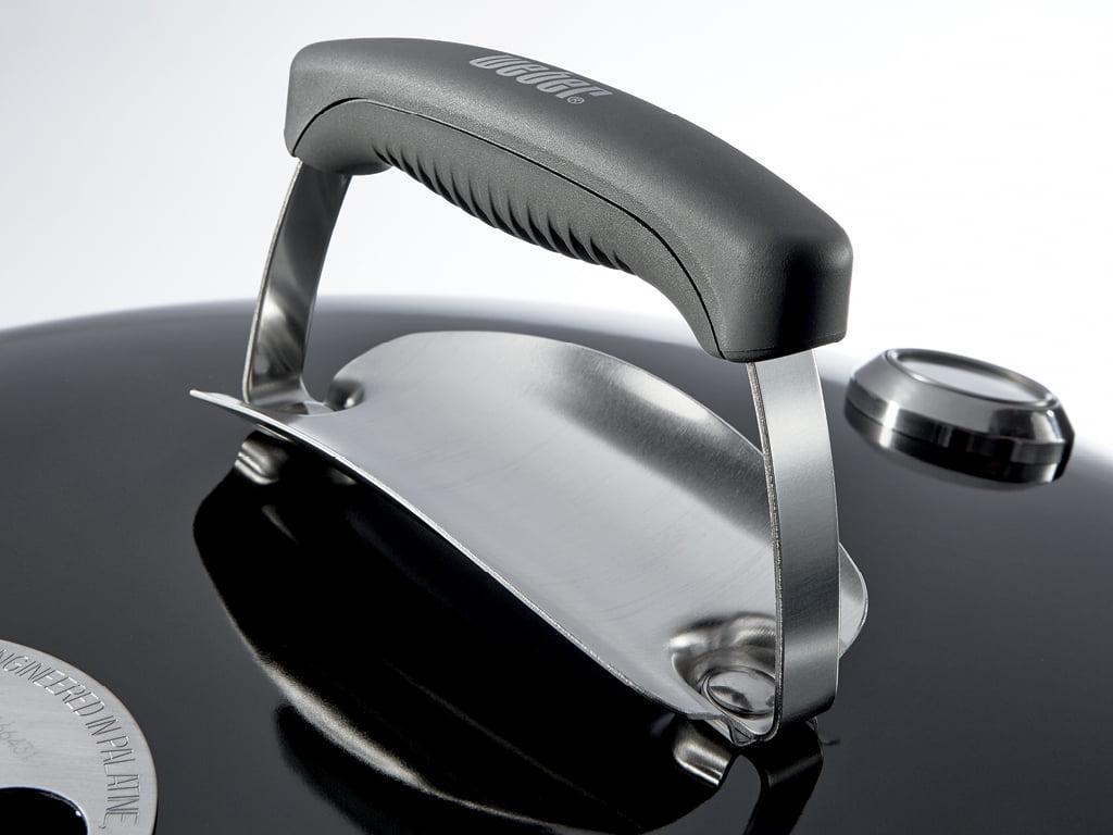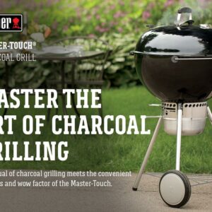 The Master-Touch 22″ Charcoal Grill is a new addition to the Weber lineup in 2015. The grill is outfitted with innovative heavy-duty Gourmet BBQ System cooking grates, a two-part grate system that may be used in tandem with Weber’s Gourmet BBQ System cookware collection. To use the cookware, the center insert grate is removed and the cookware installed. The outer grates remain in place so additional foods may be grilled. The Gourmet BBQ System cookware collection (sold separately) includes a porcelain-enameled cast-iron Griddle, Sear Grate, Wok, a stainless steel Poultry Roaster, and Pizza Stone with Carry Rack. The Master-Touch Charcoal Grill features many other benefits, such as taller legs to raise grill to optimal height and a shield on the lid handle to give extra protection to hands.