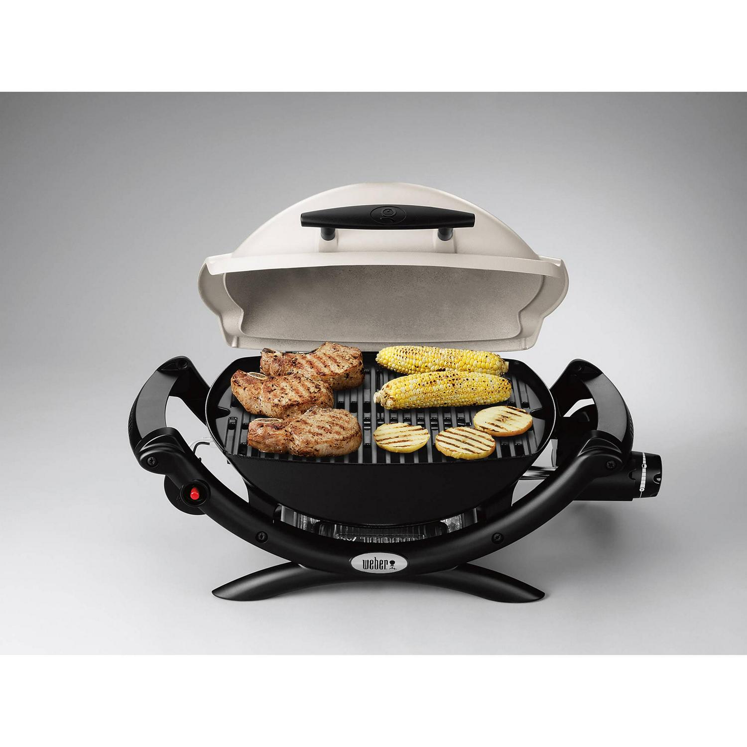 Weber Q 1000 Portable Propane Gas Grill – Titanium – 50060001. 50060001. Portable Gas Grills. Ready, set, grill on the go! The Weber Q 1000 portable gas BBQ grill offers 189 square inches of cooking space to create the grilled foods you love anytime, anywhere. Weber Q gas grills are perfect for tailgating, camping or small spaces like apartment balconies. With the push of a button, the grill ignites quickly and easily. The durable stainless steel burner produces 8,500 BTUs and the infinite control burner valve allows you to set it to the precise temperature you need with an easy-to-use knob. This Weber portable gas grill features a two-piece, porcelain-enameled cast iron cooking grate that heats evenly across its surface. It also features a cast aluminum lid and body with drip ducts and a sturdy glass-reinforced nylon frame and handles. A removable grease catch pan is included to make clean-up easy. This Weber Q 1000 operates on a portable 14. 1 or 16. 4 ounce propane cylinder (not included). An optional 20-lb tank adaptor hose is available as an accessory for those times you need to feed larger groups. Weber Q recipe booklet is included….