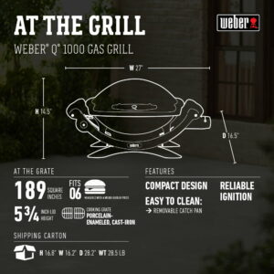 - Weber Portable Gas Grill, Q1000 with owner’s guide and grilling guide