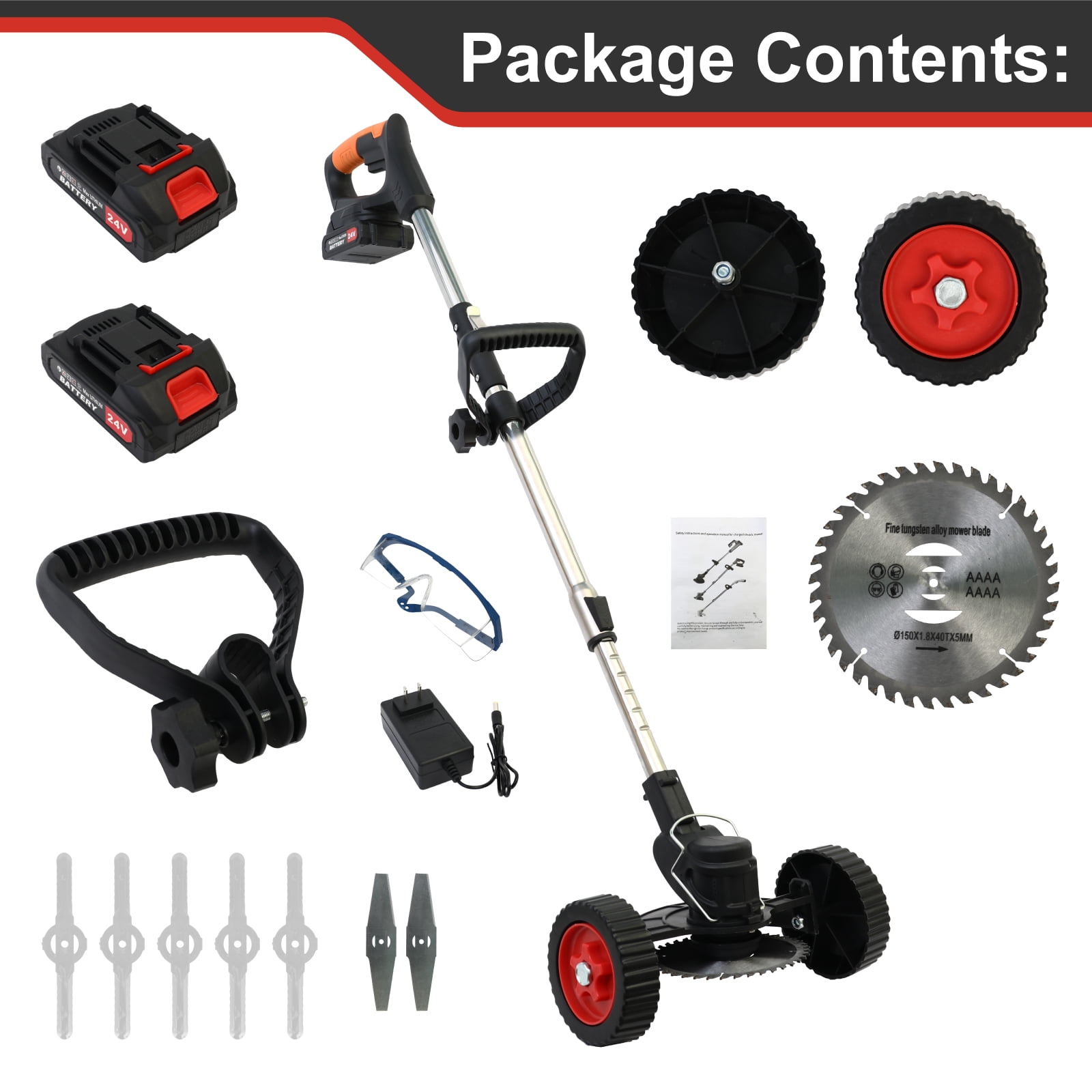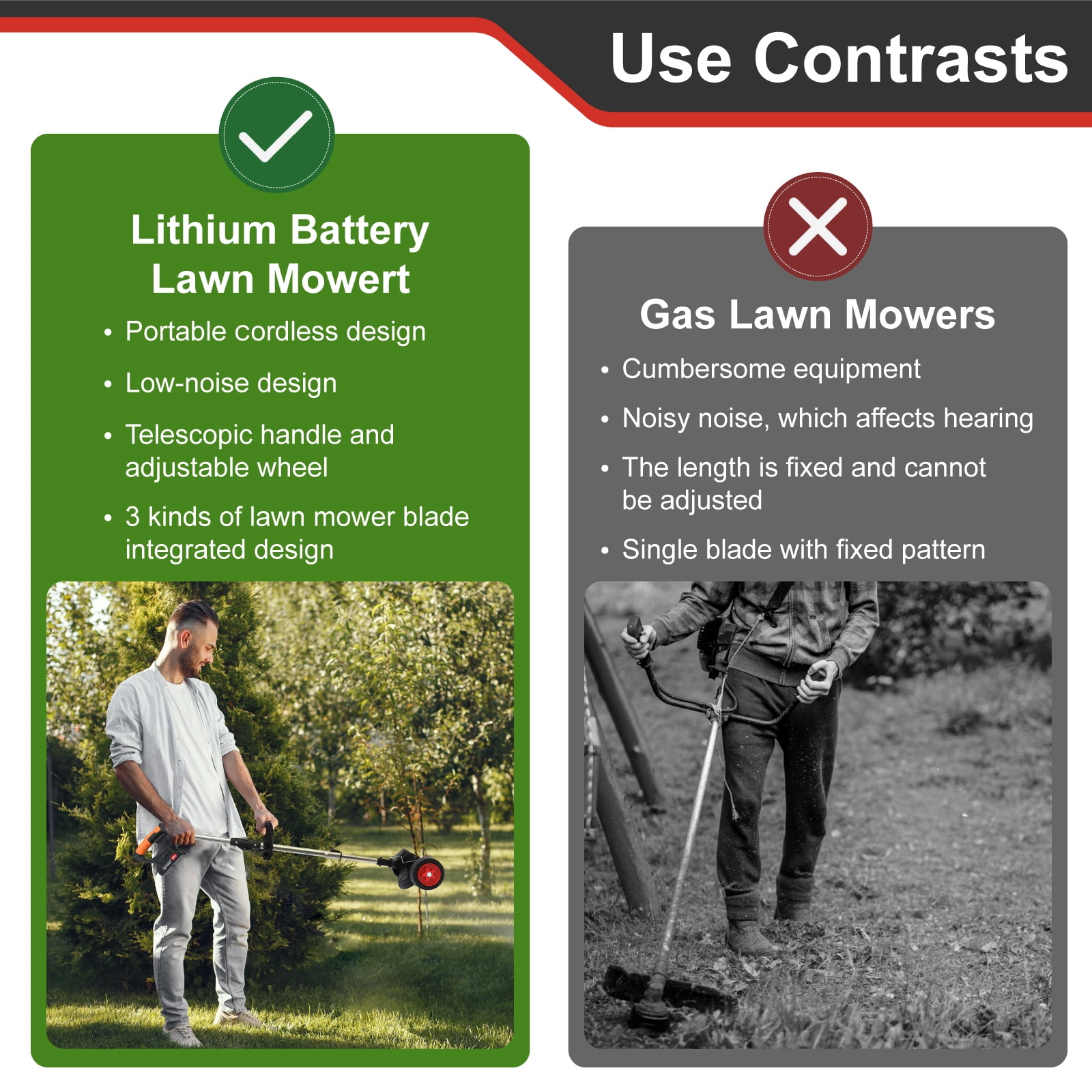 Lightweight & Portable: It is compact and lightweight, easy to carry. Compared with models with cables, this trimmer is more mobile and easier to use and carry. It can be used in villas, yards, communities, gardens, parks and other areas. Best choice for garden pruning. Low Noise: The cordless grass trimmer is lighter and quieter than a petrol-powered trimmer, as well as less maintenance-intensive and emission-free. Efficient Work: 650W high power motor with 24V 2000 mAh high capacity rechargeable lithium battery for 18000RPM rotation speed and wireless working to help you work easier and more convenient. Dual Control Switch: Dual control switch for safer operation and prevent accidental touch. Just use it at ease.