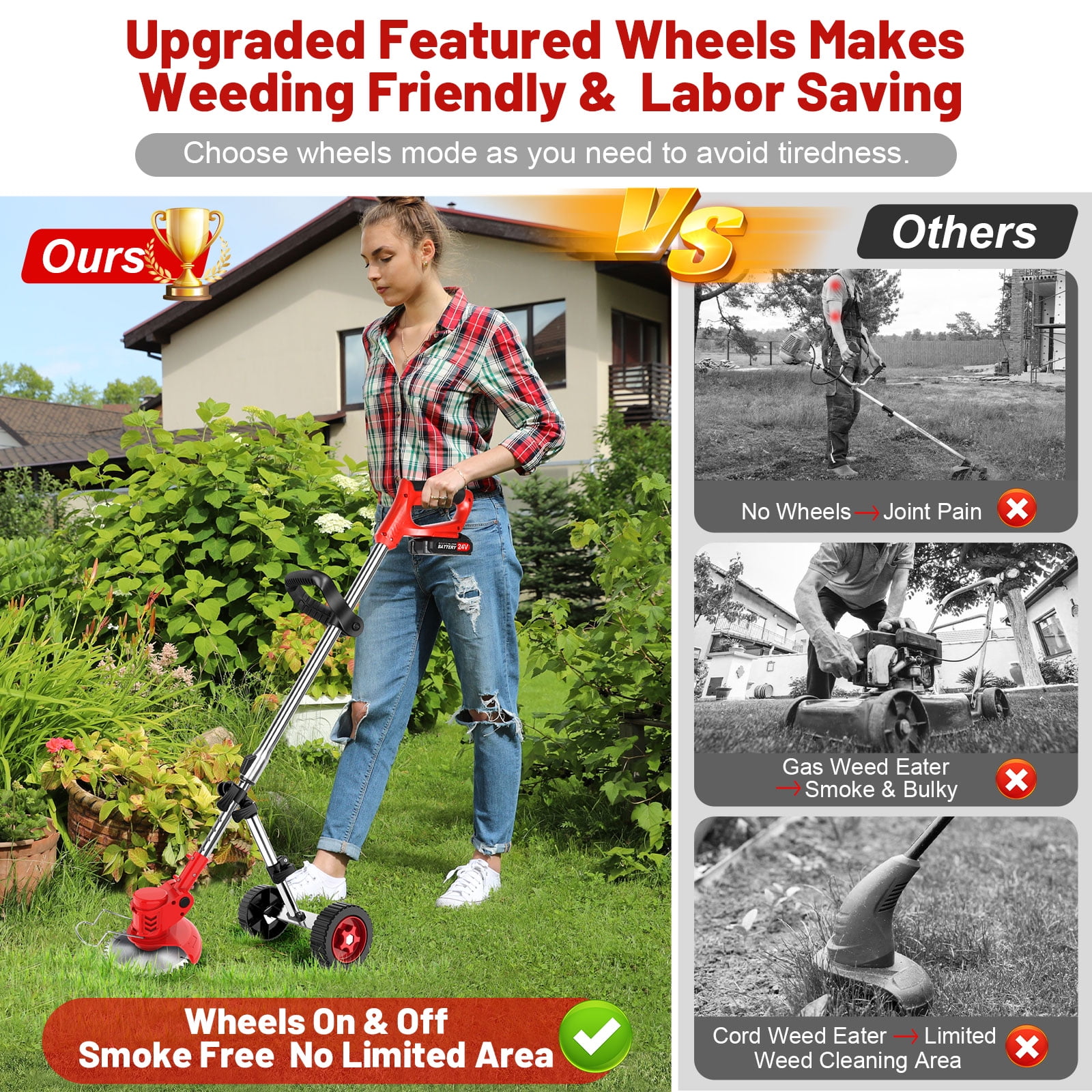 Weed Wacker Cordless Electric Grass Trimmer & Edger, Tanbaby 6 inch Weed Eater Kit with Upgraded Wheels