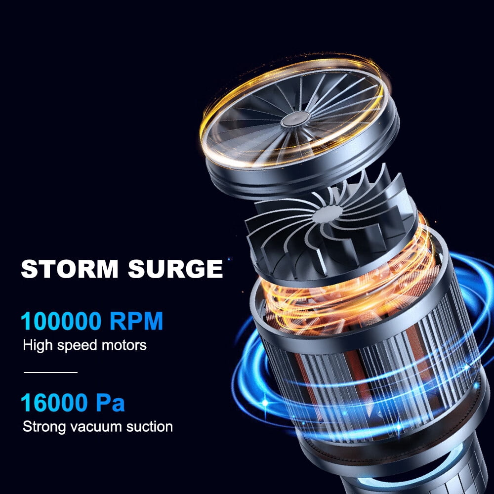 Introduction: Brushless Multifunctional Cordless Vacuum Cleaner, this vacuum cleaner is uniquely designed to be not only beautiful but also practical, making it a powerful and easy-to-use cleaning tool. Its unique design and excellent performance make it ideal for home cleaning. Parameters: Speed 100000 Suction power up to 16000Pa Type-C charging port 2 hours full charge Use time about 25 minutes With flashlight illumination function, can be used as a flashlight alone. DETAILS: 1. Innovative and unique styling, high recognition: the appearance is uniquely designed and can be easily recognized, this design makes it a part of home decoration, not just a vacuum cleaner. 2. Rotating and folding, convenient storage: It can be easily rotated and folded, making it take up very little space when storing. 3. Brushless motor, three 5C power batteries, strong suction power: the vacuum cleaner is equipped with a brushless motor and three 5C power batteries, making it powerful suction power. 4. Closed air duct design, more suction power: The closed air duct design makes its suction power more powerful, which can effectively clean the dust and debris on various surfaces. 5. Metal dust mesh, enhanced dust filtration: this vacuum cleaner is equipped with metal dust mesh + HEPA filter, double layer filtration can filter dust and other impurities more effectively. 6. Separately increase the charging power control IC, charging more safe and reliable: increase the charging power control IC, make its charging process more safe and reliable. 7. Increase the pet suction and blowing head, suction hair more quickly: this vacuum cleaner is equipped with a pet suction and blowing head, you can clean up pet hair more quickly. 8. Charging 5V 3A, faster charging: the charging voltage is 5V and the current is 3A, which makes its charging speed faster. 9. Increase the dust collection bin, can accept more and more impurities: the dust collection bin has been enlarged, can accept more dust and other impurities. 10. Increase the strong light, shine brighter and farther: increased the strong light, so that it can irradiate the darker places. 11. Three-stage suction design, any change: this vacuum cleaner has three-stage suction design, users can change it as needed. Suction power: first gear 8000pa; second gear 12500pa; third gear 16000pa. 12. Intelligent blocking, put and take freely: with intelligent blocking technology, it makes the user can operate more conveniently.