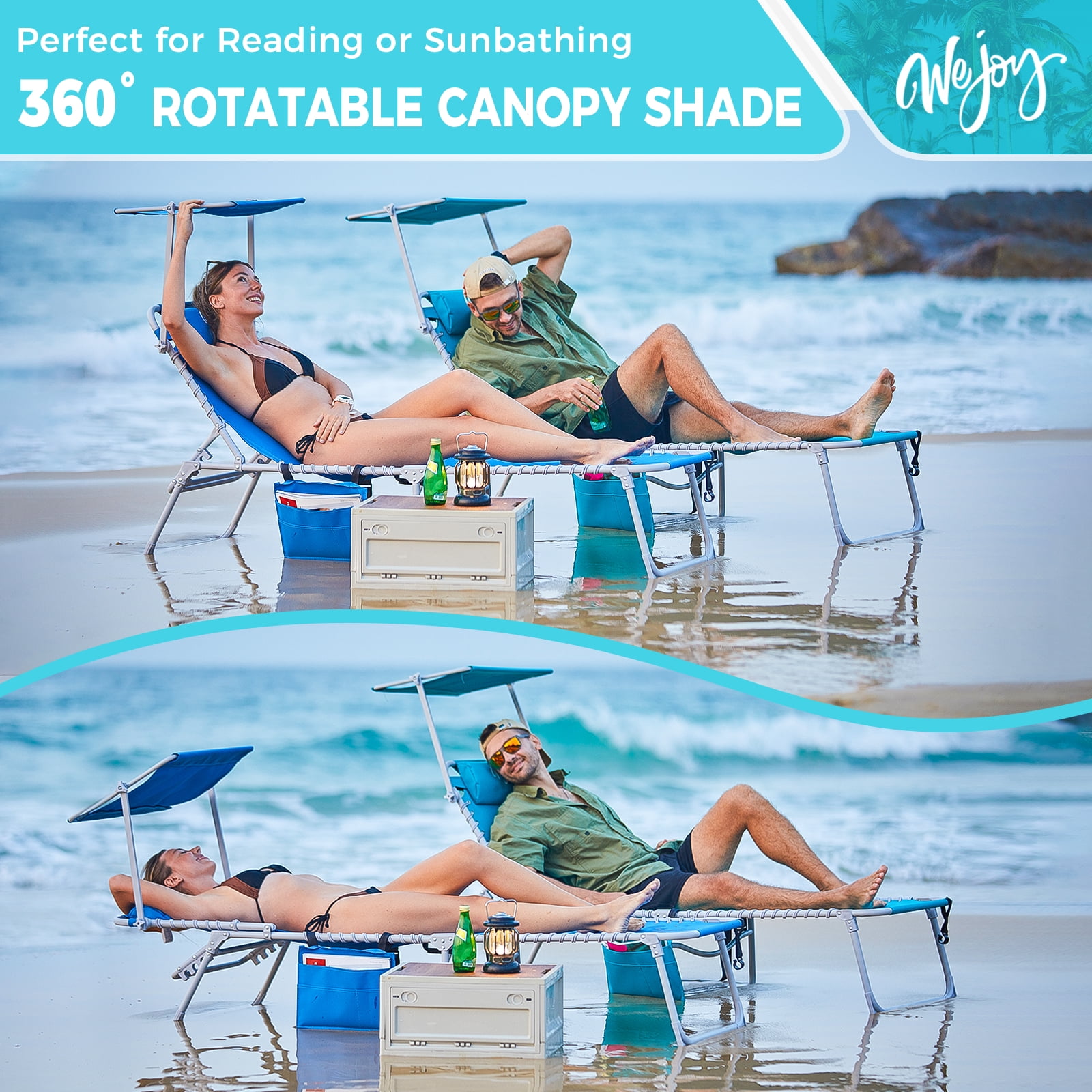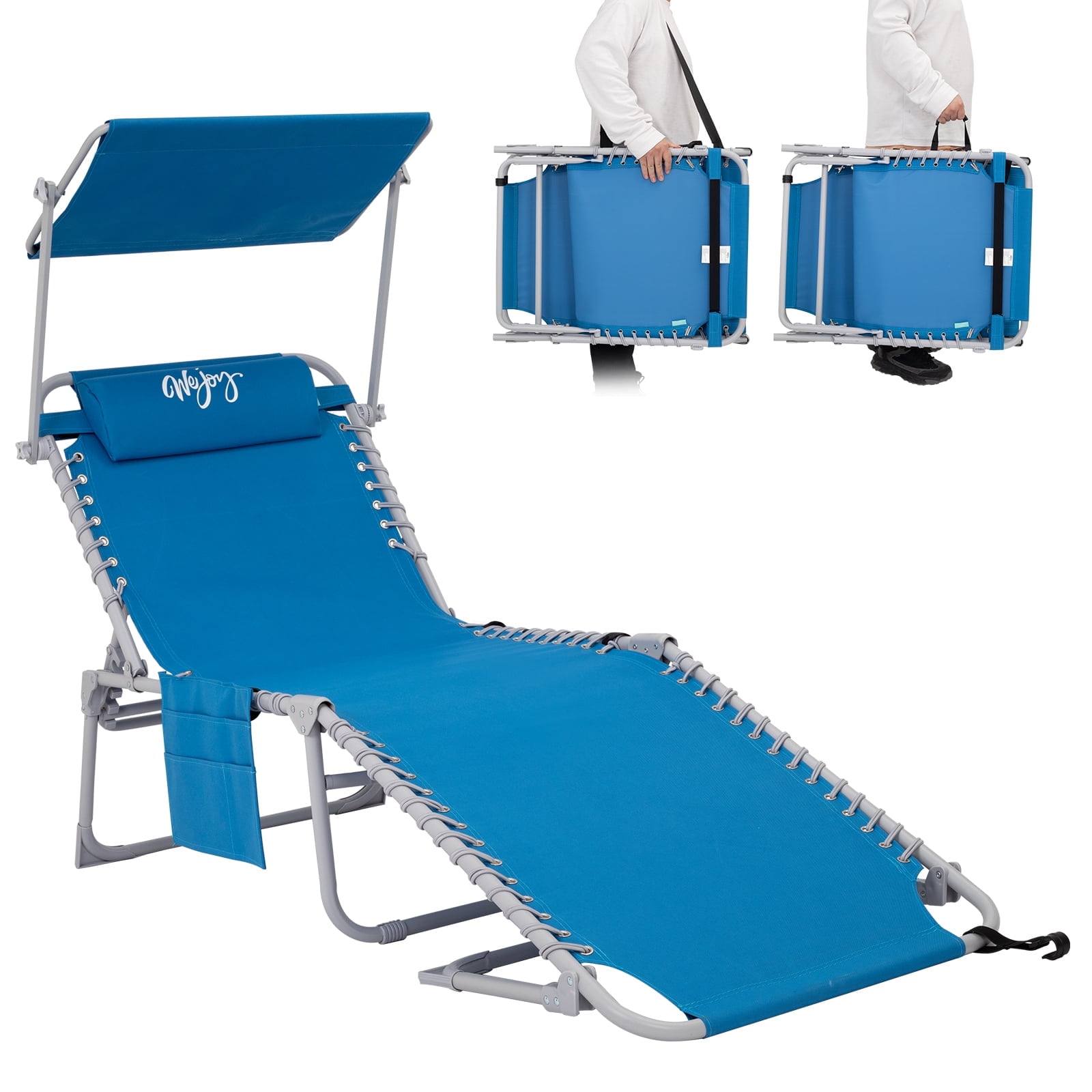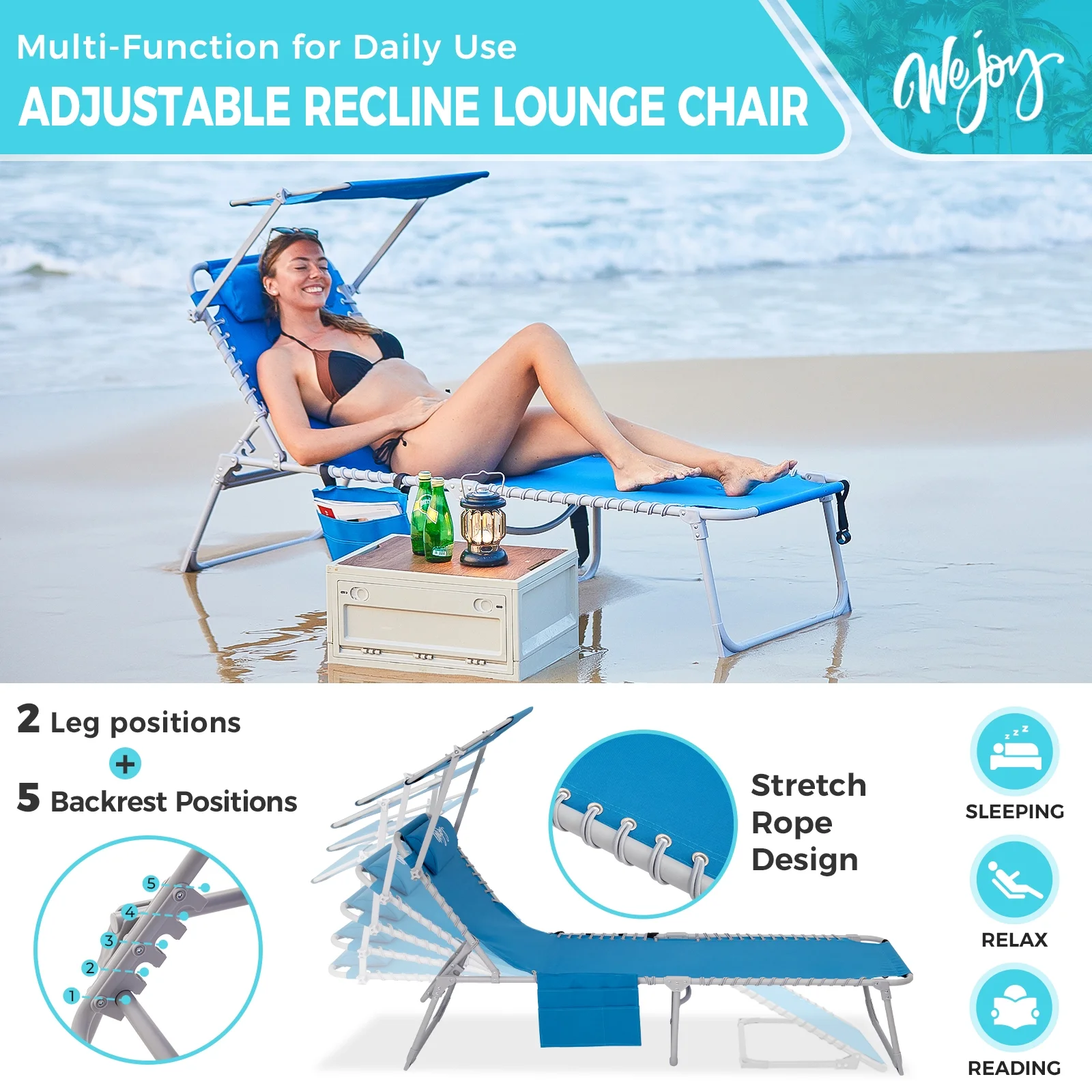 #WEJOY Beach Chaise Lounge Chair, 5 Position Adjustable Lounge Chaise, Outdoor Folding Chaise, Tanning Chair with Pillow and Sunshade, Recliner Chair Support up to 264 lbs