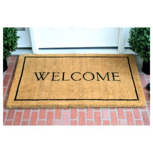 Made of natural coir, a dense fiber that is naturally mold and mildew resistant. Coir is a renewable resource that is durable and coarse, excellent for scraping shoes clean. Vinyl backed for increased durability and to help prevent movement, coir doormats are weather tolerant absorb moisture and retain their shape. For best results keep in a sheltered area such as a covered porch, keeping extreme moisture and sunlight to a minimum. Vacuum, sweep or lightly hose clean.